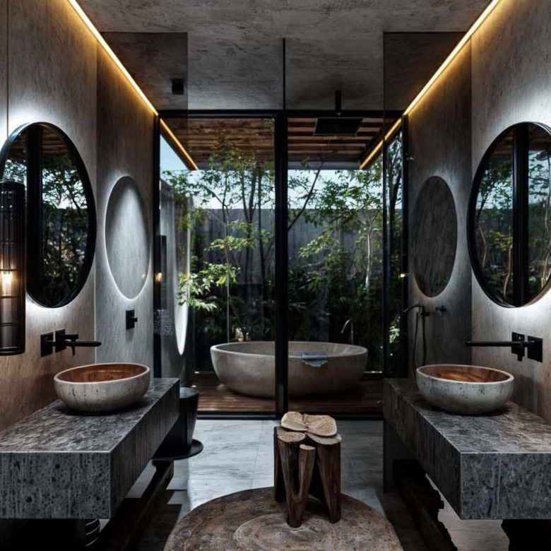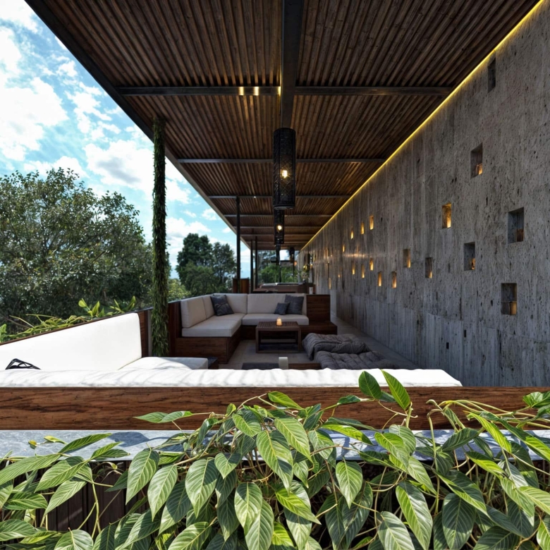 The spacious living and dining areas provide a seamless flow between indoor and outdoor spaces, allowing residents to immerse themselves in the tranquility of Tulum’s natural landscape. The gourmet kitchen is thoughtfully designed with stained tzalam wood cabinetry, black quartz countertops, and premium fixtures, making it both functional and aesthetically pleasing. Each of the three bedrooms offers a peaceful retreat, complete with custom wood finishes, generous storage, and picturesque views of the surrounding jungle. The bathrooms are designed to evoke a spa-like experience, featuring oversized rain showers, elegant black fixtures, and refined, natural materials.