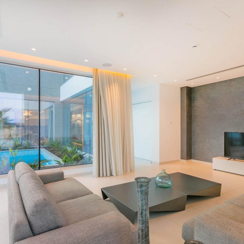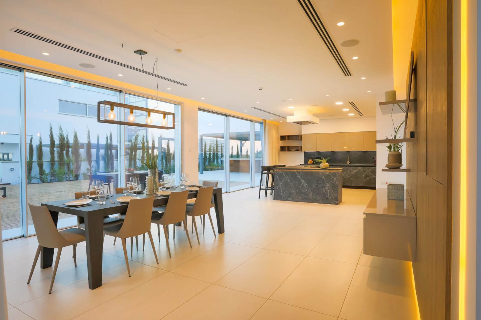 Experience coastal luxury at its finest in this stunning villa nestled between Ayia Napa and Cape Greco. Designed for those seeking opulence and tranquility, this residence offers proximity to the sea and exciting resort amenities while providing a quiet retreat for unwinding.Situated within a modern residential development, this villa is one of six distinctive homes, each occupying its own expansive plot. Overlooking the turquoise waves of Cape Greco just 150 meters away, the villa boasts contemporary architecture that seamlessly merges aesthetic appeal with practical functionality, utilizing premium finishing materials for a modern, bright, and crisp island design.Spanning three floors, the interior layout epitomizes comfort and refinement. Spacious rooms with French windows flood the villa with natural light, enhancing the airy ambiance and offering captivating views. This property presents an ideal setting for 21st-century luxury living by the sea.