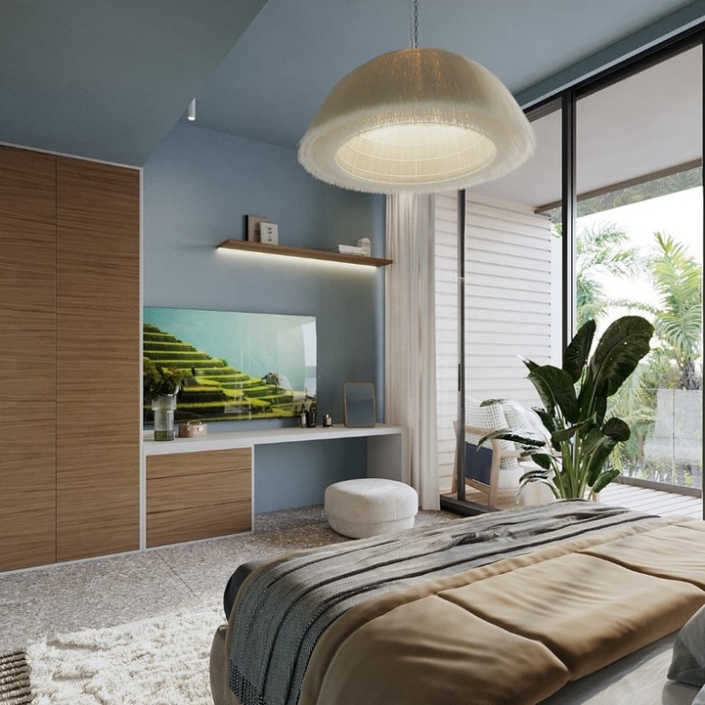 The 2 storey townhouse occupies 82 sqm of land and build to the highest specifications. Featuring 2 bedrooms and a living space that looks out to the 9 metre swimming pool, the fully furnished property also boasts a fully equipped modern kitchen, powder room, parking and even a sauna.
