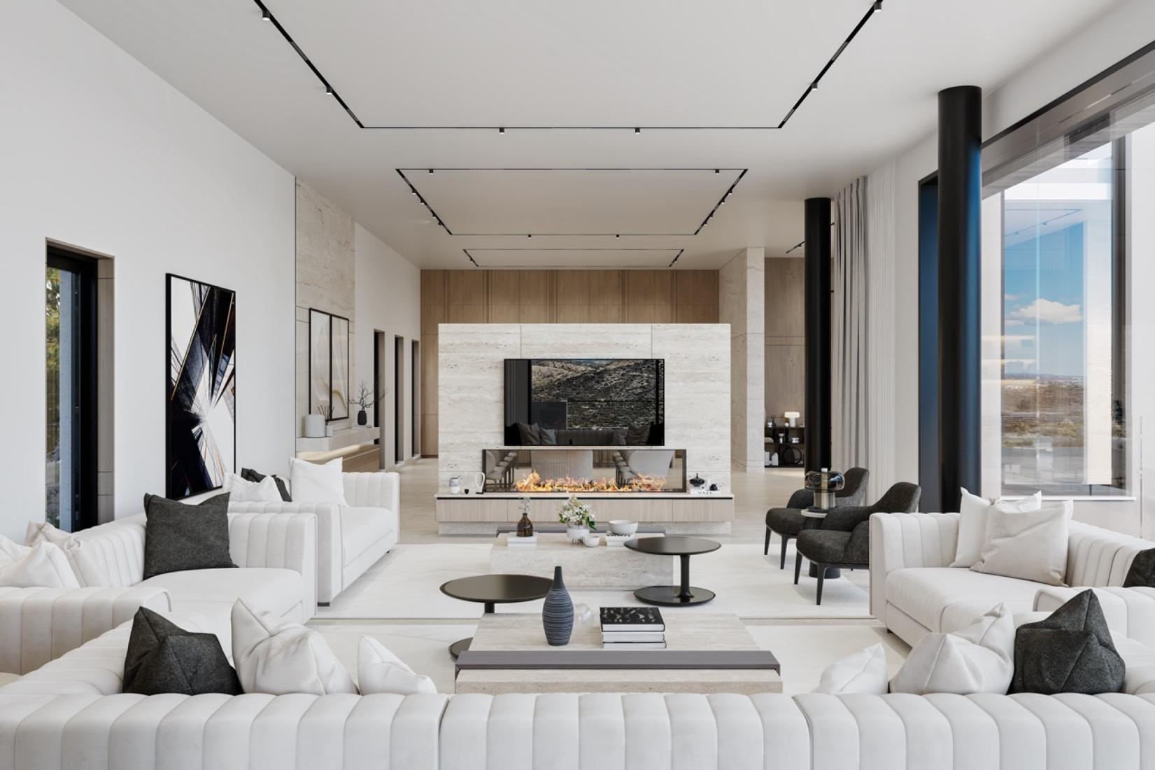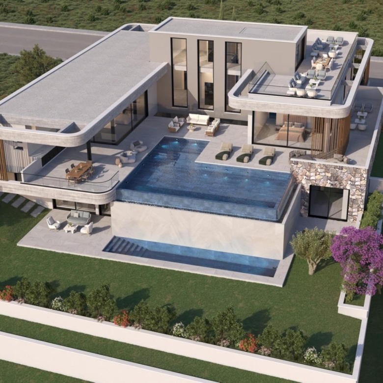 This magnificent 4 bedroom villa is nestled on a sprawling 1,622 sq. m. plot, offering captivating mountain views. Located in the prestigious Opalia Hills suburb of Limassol, the villa resides in a serene neighborhood of modern luxury homes and natural beauty, just 10 minutes from the city and 15 minutes from pristine beaches. The villa features two floors connected by an elegant staircase and lift. The open-plan ground floor boasts a modern, spacious living room, dining area, kitchen, kitchenette, guest toilet, and three grand bedrooms with en-suite bathrooms. The upper floor houses a large bedroom and access to a roof garden, the perfect spot to savor the spectacular mountain and sea views. Experience unmatched luxury and tranquility in this exquisite retreat.