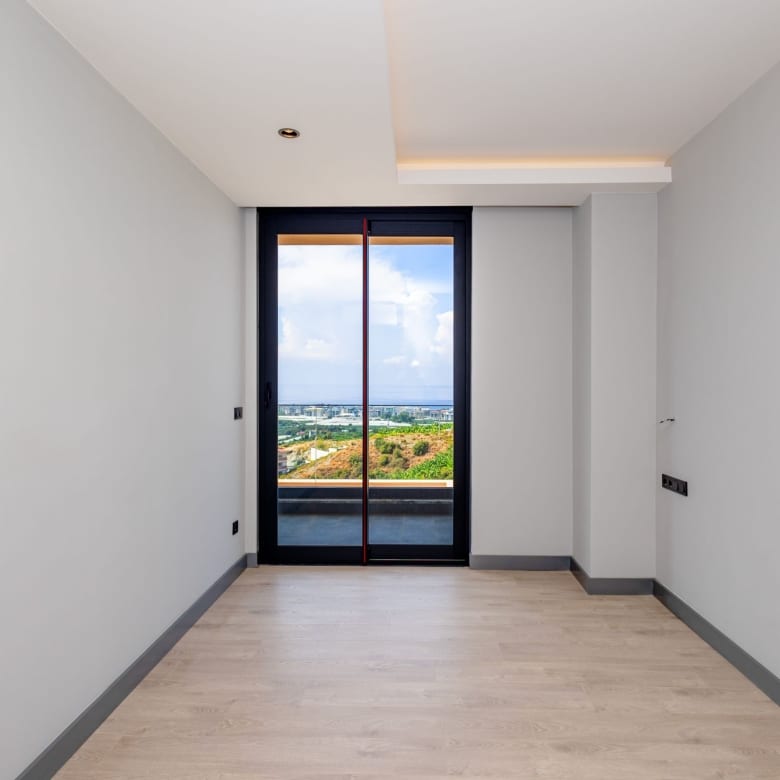 Inside, the villa is a testament to exquisite craftsmanship and thoughtful design. The two spacious living rooms offer access to either the pool area or a large balcony, each presenting breathtaking vistas. The floors throughout are adorned with custom large ceramic tiles, adding a touch of elegance to every room. The villa offers four luxurious bedrooms, including a grand master suite with a walk-in closet, a private bathroom with a round jacuzzi, and access to a large rooftop terrace. Each bedroom provides access to private balconies with spectacular sea views, ensuring a serene retreat for every occupant.