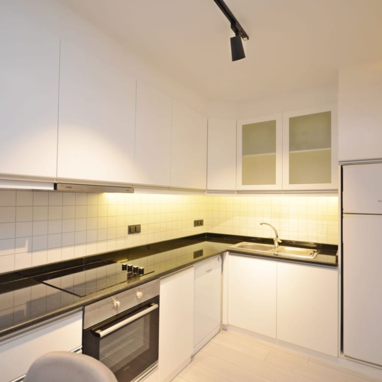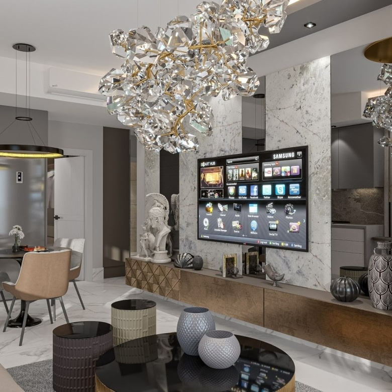 The villa’s four bathrooms are a showcase of opulence, featuring underfloor heating, custom ceramic tiles, and designer fixtures. Indulge in the main bathroom’s round jacuzzi or enjoy the heated “Hamam Seat” in another bathroom’s shower area. The custom-built luxury kitchen is a chef’s dream, complete with a kitchen island/bar, Cimstone countertops, and high-end Siemens appliances, including an oversized fridge/freezer.