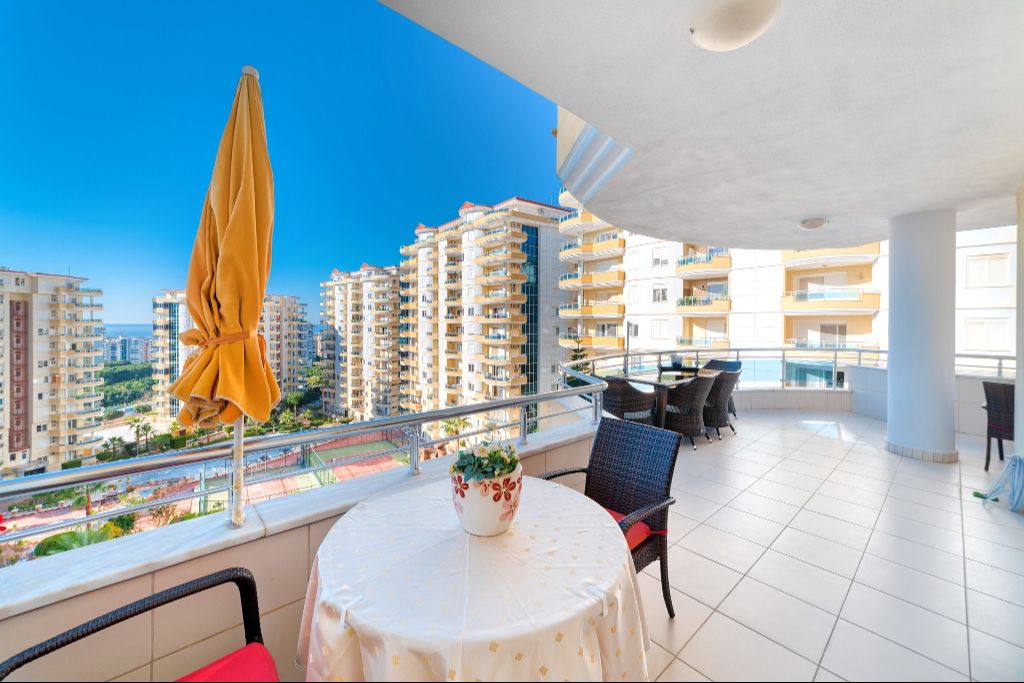 – Multiple rattan furniture sets on balconies for lounging and sunbathing.