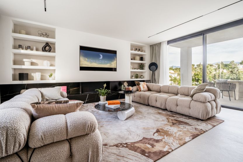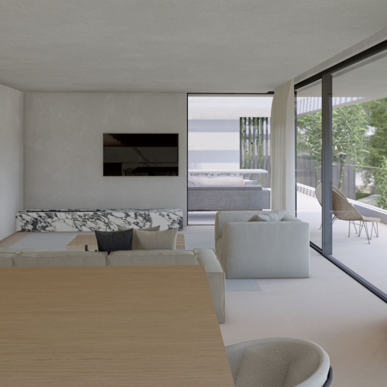 On the upper floor of the house there is a bright living room or office, with a fully glazed wall that opens onto a cosy terrace with barbecue. An ideal outdoor space to enjoy the fresh air, with unobstructed views and total privacy.