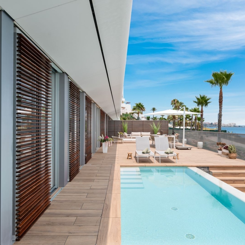 Boasting over 300m² of refined internal living space and an additional 350m² of terraces, this penthouse redefines contemporary living. Each of the five bedrooms has panoramic views and feature en-suite bathrooms with high-end hydro-massage showers and jetted baths. The property is equipped with over €250,000 in custom upgrades, including two bespoke kitchens with Miele appliances, underfloor heating, a full domotic home automation system, and an elegant Italian staircase. The duplex layout includes two private plunge pools, a spacious jacuzzi, and separate living areas on each floor with open-plan kitchens, perfect for entertaining or multi-generational living.