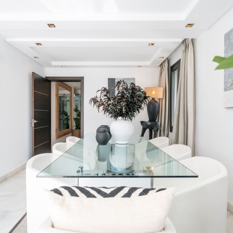This one-of-a-kind 5-bedroom duplex penthouse in Santa Barbara Heights, Mijas Costa, offers an unparalleled lifestyle of luxury and exclusivity. Spanning over three apartments seamlessly merged into a single expansive property, this home provides breathtaking panoramic views, stretching from the snow-capped Sierra Nevada mountains to the coastlines of Africa and Gibraltar. Situated in the most coveted block, it’s walking distance to the beach, making it the ultimate retreat in the Costa del Sol.