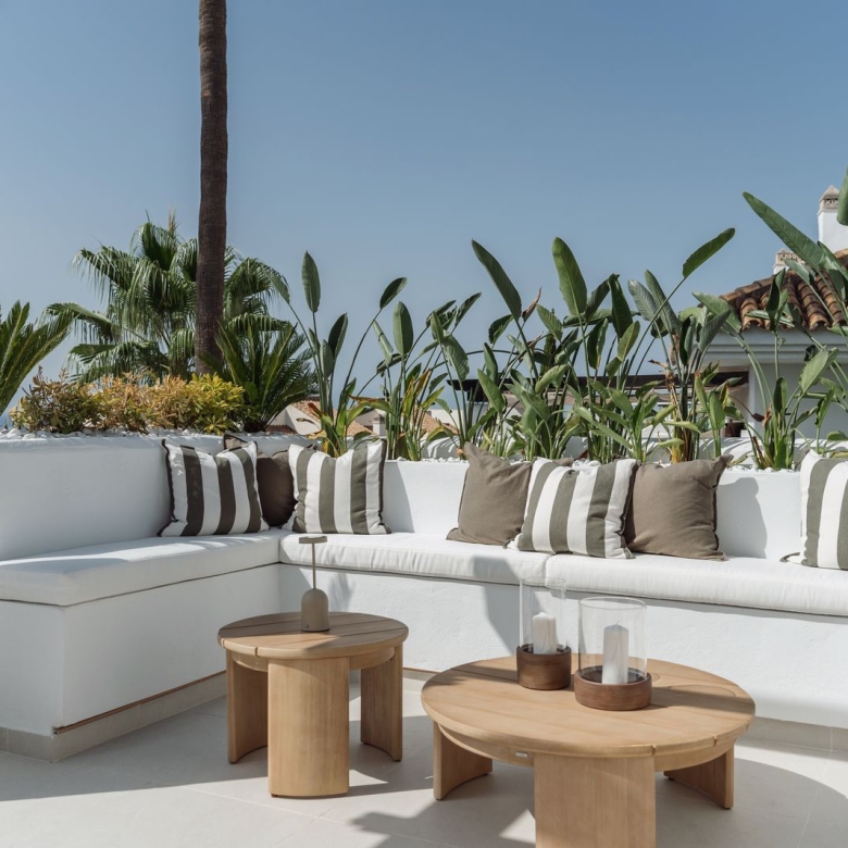 Fully renovated and effortlessly stylish, this 3-bedroom, 3-bathroom corner penthouse blends sleek Scandinavian design with sweeping Mediterranean views. Spread across two levels, this bright and airy home is made for laid-back coastal living.