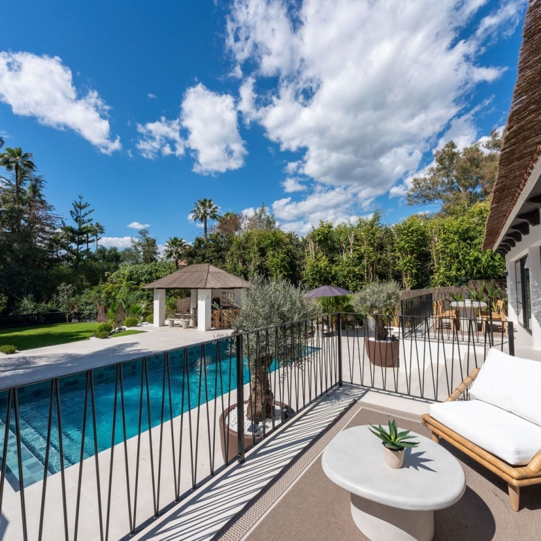 This Luxury Penthouse is located at the heart of The Golden Mile, in a gated complex with only 47 apartments, with 24-hour security and beautiful communal gardens. The property has large rooms, a huge terrace with new jacuzzi and barbecue area, floor heating and a beautiful solarium with views to the sea, all furnished and decorated with high quality and good taste and the main suite has a big marble quality bathroom…