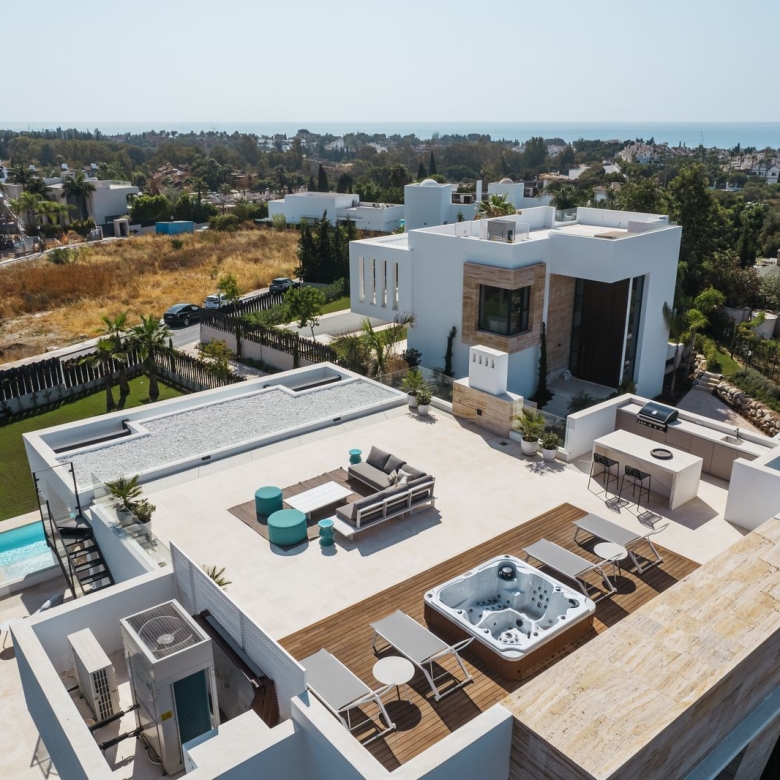 With a privileged location: Located opposite La Meridiana restaurant, in the heart of the Golden Mile, direct exit to the Marbella ring road (exit 181 B of the A7 Nagüeles), next to the Puente Romano. Only 900 metres from the beach. Three minutes from Puerto Banús and five minutes from Marbella and ten minutes from 8 golf courses. And with a school bus stop very close with connections to all the schools in Marbella and surrounding areas. Close to the rest of the world. Having direct access to the motorway means that Malaga International Airport is only 40 minutes away.