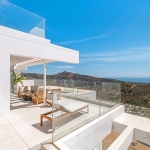 Wonderful three bedroom, south east facing duplex penthouse in the exclusive and gated community of Monte Paraiso on the Golden Mile, with 24hr security, several outdoor swimming pools, a bar/restaurant, children’s play area, fully equipped gym, steam room, sauna, squash court, massage room, indoor heated swimming pool and tropical gardens that are maintained to the highest standards. As well as all this it is only a short walk to the famous Puente Romano Hotel and the beach. The main level of the property has a large living and dining area with patio doors leading out to the spacious terrace with amazing sea views; a fully fitted kitchen with separate utility room; two guest bedrooms, one with a private terrace with stunning views to La Concha mountain; and a guest bathroom. The upper level leads to the master suite with vaulted ceilings, a Jacuzzi bath and access to a private terrace with spectacular sea views. Other features include marble floors, fireplace, fitted wardrobes, hot and cold air conditioning, two private parking spaces and a storage room.