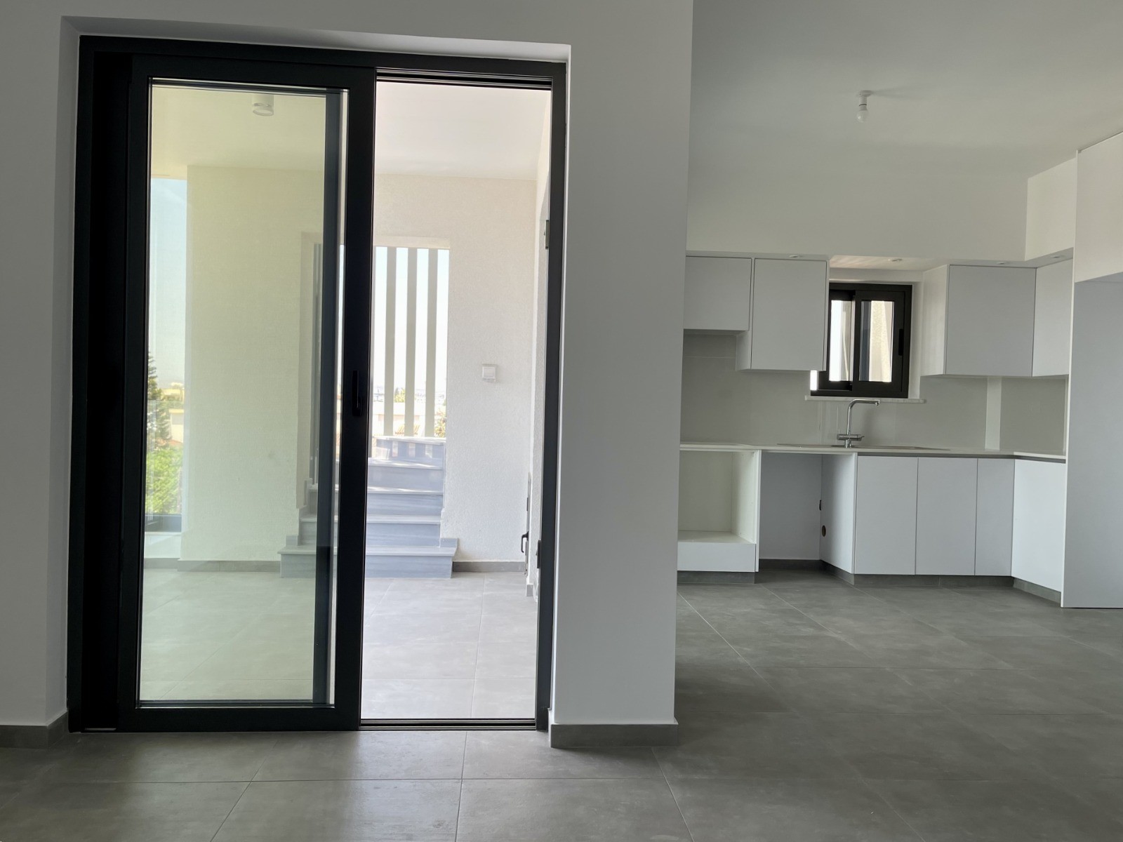 Located in a convenient and quiet residential area, this stunning 2-bedroom penthouse is less than a 10-minute drive to the famous Finikoudes Beach and within walking distance to essential amenities. The open-plan living room connects seamlessly with the modern kitchen, creating a spacious and inviting atmosphere. The apartment features two bedrooms, one of which is ensuite, and an additional main bathroom. Outdoor living is elevated with a large covered veranda and a private roof garden equipped with a barbecue area, offering stunning panoramic views of the city.