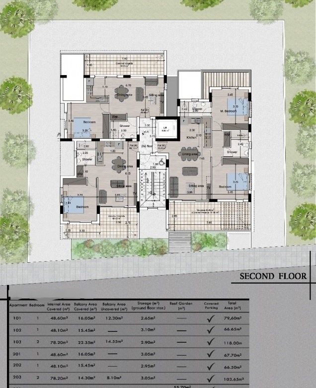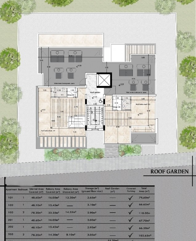 Welcome to an extraordinary new development in the upscale Aradippou area, where modern architecture meets premium convenience. Situated in a prime location close to all amenities, this project offers effortless access to the main highway and Larnaca city, making it ideal for contemporary living.This impressive 2-bedroom, 3-bathroom apartment is designed to elevate your lifestyle. It boasts a 78.75 sqm covered area, a spacious 26 sqm covered veranda, and a 34 sqm uncovered veranda, creating ample opportunities for relaxation or entertainment. Additionally, it features an exclusive 55.5 sqm roof garden, perfect for hosting gatherings or enjoying panoramic views. A 3 sqm storage room is also included for added convenience. The total area is a remarkable 197.25 sqm, offering unmatched space and functionality.The project is currently under licensing, with an anticipated completion date of June 2026. This is a unique opportunity to secure a luxurious home or a prime investment property in one of Aradippou’s most desirable neighborhoods.Experience the perfect combination of modern design, comfort, and connectivity—your dream home awaits!