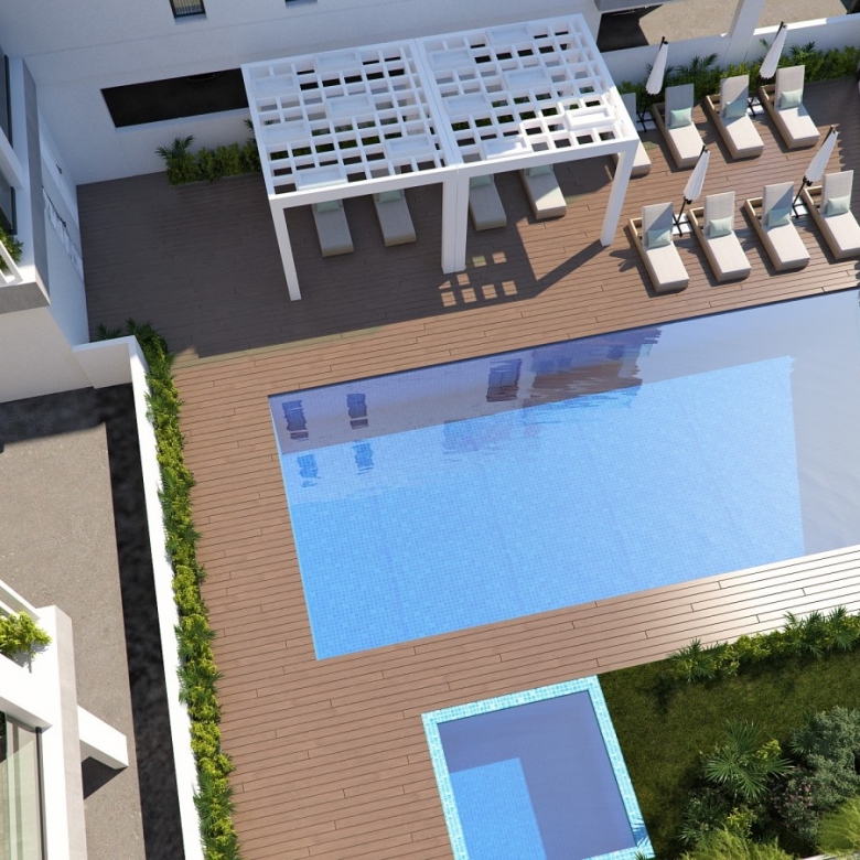 Unique project in Larnaca. This amazing residential project of 2 blocks is in a residential highly desirable area just behind a landmark supermarket in Larnaca situated on a corner plot. It is a fourth-floor building with modern design and is composed of spacious apartments with sea view and penthouses with spacious verandas and large terraces. The building has a communal pool for adults and a common pool for children. In addition, a fitness center will offer you the quality you asked for and a healthy living. This unit has a roof garden of 66.70 square meters.