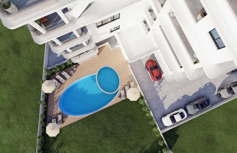 This project boasts a very original, affluent and futuristic design of high artistic caliber, with numerous architectural features and exterior finishes. This A’ class energy efficient building comprises 14 spacious apartments with large veranda areas, en-suite bathrooms, large kitchen, covered parking and storage rooms. The project also sports communal adult and kiddy pools, equipped with both outdoor and indoor shower facilities and extensive landscaped green areas. Very conveniently located in close proximity to the Radisson-Blu hotel, a mere 2 minutes from the beach and within easy walking distance to the town Centre with its many shops, restaurants, cafes bars and other local amenities. The location also offers very easy access onto the highway network. However, being set off the main strip, this location offers you all the benefits of quiet residential living while allowing easy and quick access to Larnaca’s popular nightlife. This unit has a roof garden of 51.30 square meters.