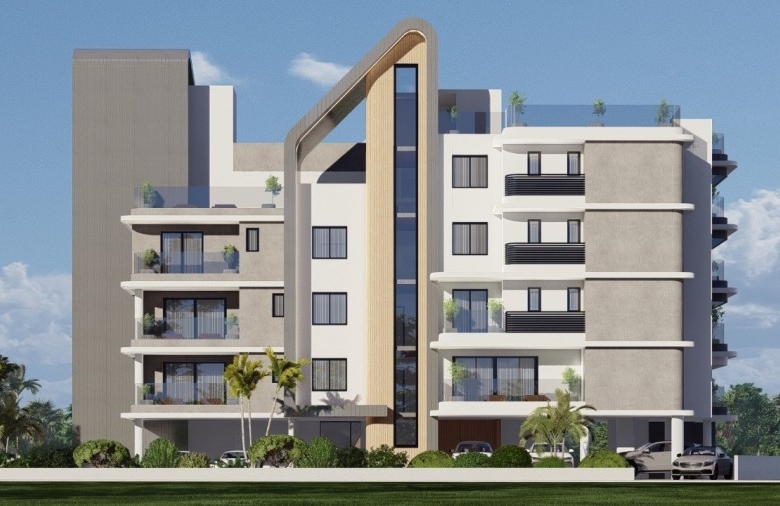 This project boasts a very original, affluent and futuristic design of high artistic caliber, with numerous architectural features and exterior finishes. This A’ class energy efficient building comprises 14 spacious apartments with large veranda areas, en-suite bathrooms, large kitchen, covered parking and storage rooms.  The project also sports communal adult and kiddy pools, equipped with both outdoor and indoor shower facilities and extensive landscaped green areas.  Very conveniently located in close proximity to the Radisson-Blu hotel,  a mere 2 minutes from the beach and within easy walking distance to the town Centre with its many shops, restaurants, cafes bars and other local amenities. The location also offers very easy access onto the highway network. However, being set off the main strip, this location offers you all the benefits of quiet residential living while allowing easy and quick access to Larnaca’s popular nightlife. This unit has a roof garden of  square meters.