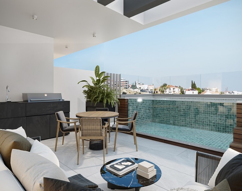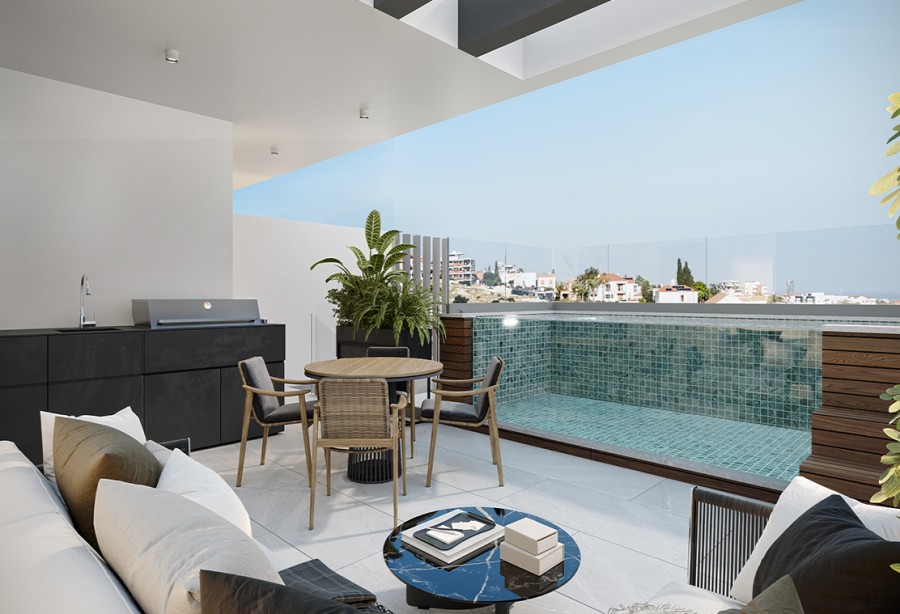 A new modern development, consisting of 1 and 2-bedroom apartments and penthouses. The project responds to the multi-layered needs of young couples or families by creating an ecosystem on one of the most imposing hills of Limassol. Offering proximity to many amenities and direct passage to the highway, connecting to other cities. Each apartment is meticulously designed with open spaces and large verandas. From the second floor and above are magnificent sea views. Penthouses have private roof gardens, each with its private pool, offering the ultimate luxurious and relaxing living experience.
