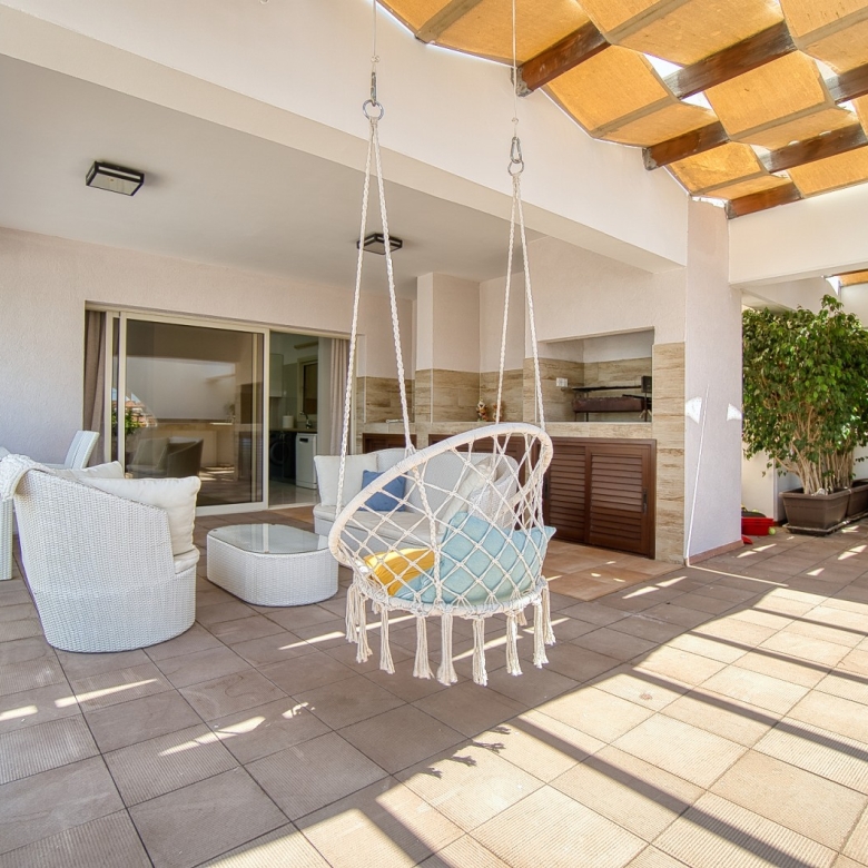 Discover an outstanding opportunity with this beautifully renovated and stylishly decorated 3-bedroom penthouse in the heart of Limassol’s tourist area, complete with title deeds. Nestled in a complex that stands as a testament to the area’s vibrant lifestyle this property is ideally situated along Limassol’s picturesque seafront, offering privacy and short distances to sandy seafront. This penthouse is defined by its bright and spacious rooms, creating an inviting atmosphere that blends comfort with modern elegance. It comprises three cozy bedrooms, two contemporary bathrooms, and benefits from a communal pool area that adds a leisurely charm to the residence. Added to the allure is a dedicated BBQ area, perfect for entertaining guests or enjoying serene evenings with family. Ample terrace offers a pleasant relaxing outdoors. Situated within walking distance to a wide array of amenities and the sandy beaches of Limassol, this property promises a lifestyle filled with convenience and luxury in one of the city’s most desirable locations. An excellent investment choice awaits in Limassol’s tourist area, offering a blend of leisure and lifestyle that is hard to surpass.