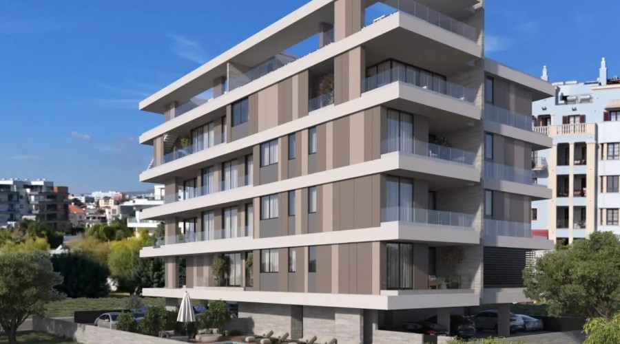 Bright three bedroom apartment in a new building in Potamos Germasogeia resort area in Limassol city. The area is famous for its gray sandy Dasoudi Beach, which has volleyball courts, an outdoor pool and water sports equipment rentals. The living room is combined with an open plan kitchen and dining room, from where there is access to two balconies overlooking the city. All bedrooms are equipped with built-in wardrobes and air conditioning, one of which is the main one and has its own bathroom. This unit has a private roof garden area of 122 square meters.