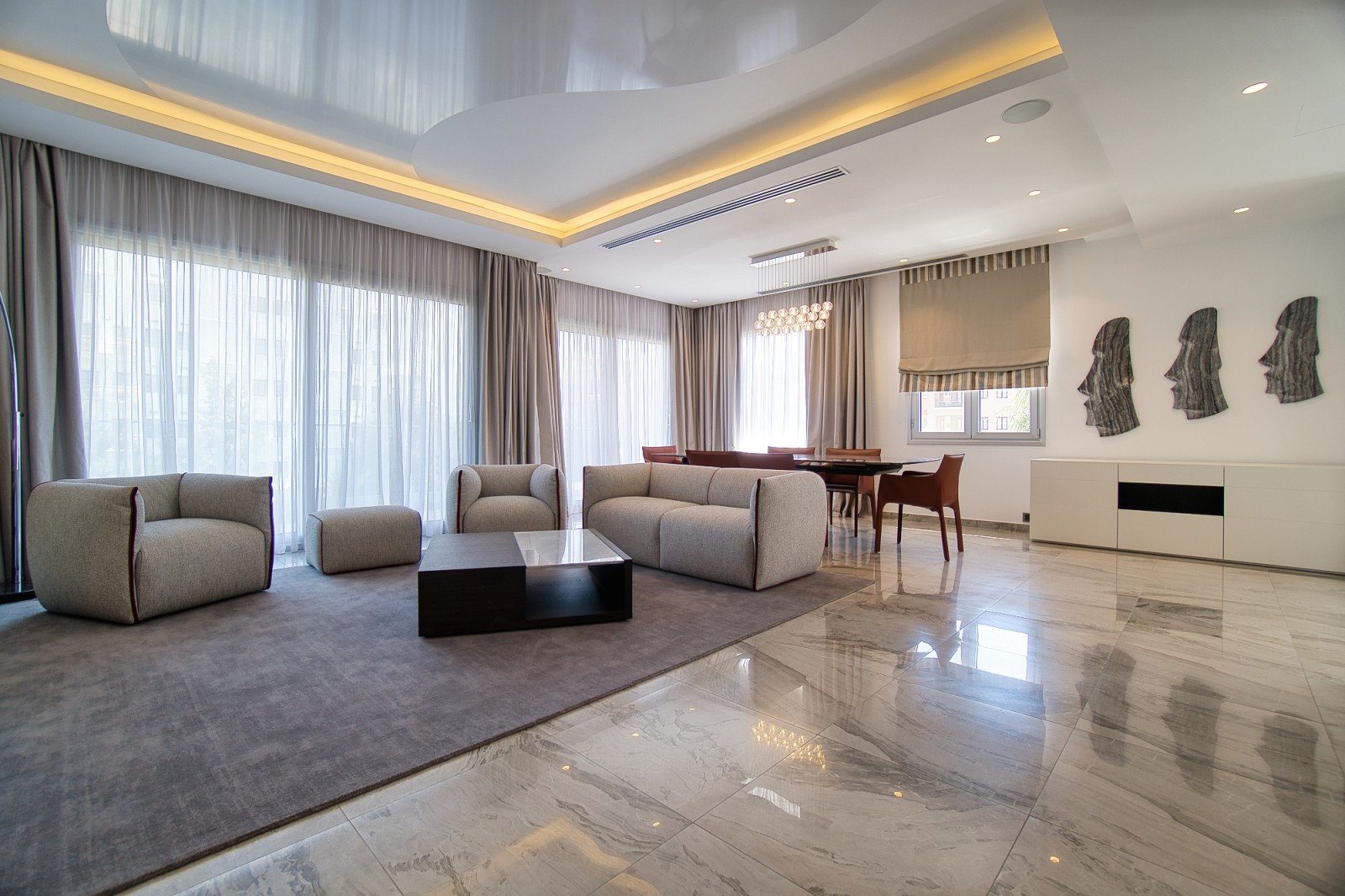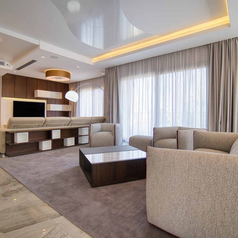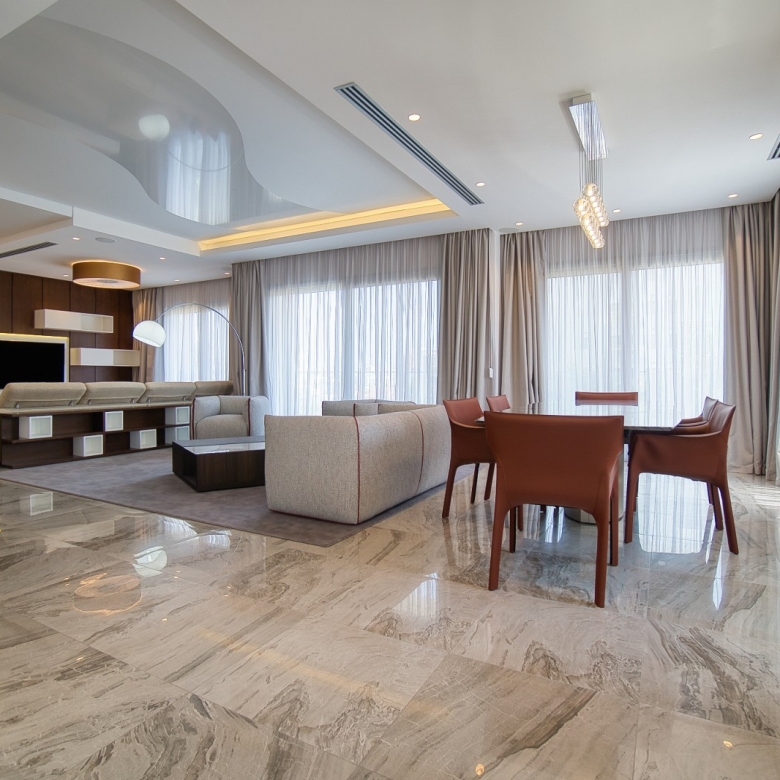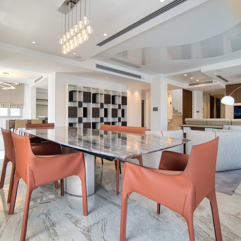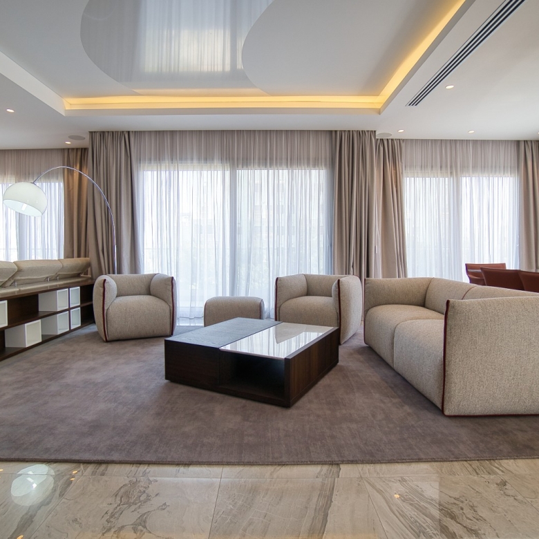 This stunning penthouse comprises of 3 bedrooms +2 extra rooms located in a tranquil and highly sought-after tourist area, offers the perfect blend of luxury, comfort, and convenience. Boasting high-end finishes and a serene atmosphere, this residence is designed for those who seek the finest in living. Step into a world of elegance with top-of-the-line finishes and meticulous attention to detail. The spacious open-plan living area is perfect for entertaining, with large windows that flood the space with natural light and offer breathtaking views of the surrounding area.