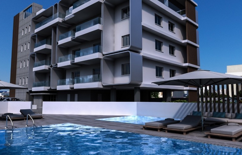Ideally located in the heart of the city, this modern apartment building is positioned 1400m from Finikoudes promenade and 400m from the Larnaca New Marina. The project is a short walking distance to numerous amenities such as food stores, bakeries, pharmacies, and close to gas stations, banks, and schools, combining luxury and comfort, offering greater convenience to both families and singles. This project consists of 1- and 2-bedroom apartments, 5 of them on each floor. All apartments have their own dedicated storage room, private covered parking, and comfortable verandas. The top floor consists of 3 penthouse apartments, all enjoying roof gardens accompanied by a magnificent view, the perfect setting for relaxing and entertaining. Also on the top floor overlooking the city is the communal pool for all the residents.