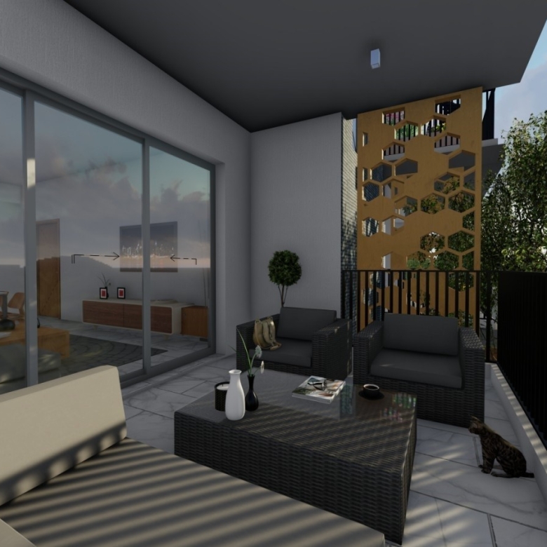 This is a project with a total of 7 apartments. All apartments are very spacious, have 1 and 2 bedrooms and include roof garden, large terraces for comfort and tranquility. The project is located in a quiet area in Zakaki Area. The location provides the opportunity to easily access basic necessities and the Limassol sea front , 10 minutes from the City of Dreams and 5 minutes from MY MALL LIMASSOL. The mesmerizing view of the city center and the sea makes the project stand out. This unit has a roof garden of 31 square meters.