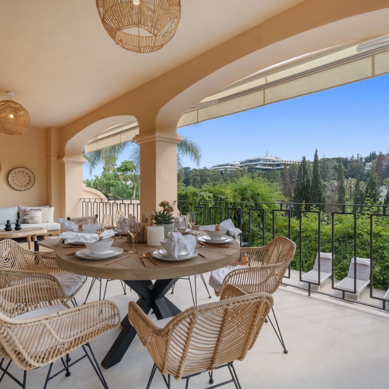 Penthouse for sale in , Benahavis with 2 bedrooms, 2 bathrooms and with orientation east, with communal swimming pool, private garage and communal garden. Regarding property dimensions, it has 56.59 m² built and 14.91 m² terrace. Has the following facilities mountainside, amenities near, air conditioning, private terrace, kitchen equipped, country view, mountain view, close to children playground, optional furniture, good condition, close to shops, close to town and close to schools.