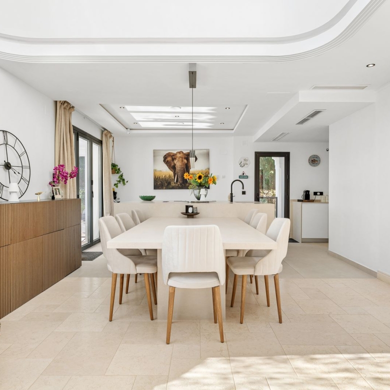 This large duplex apartment has three spacious en suite bedrooms, with build-in wardrobes. The master bedroom, located upstairs, has furthermore a private terrace. The finishings include cream marble floors, underfloor heating, and travertine marble bathrooms and sauna in the master bedroom. The property has been maticulously maintained and is well presented in all areas. In addition, the property has two ample garage spaces and a storeroom included in the price.