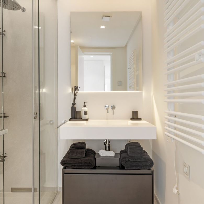 The penthouse is fully furnished with the highest-quality luxury finishes. The two terraces are equipped with bioclimatic electric sliding roofs, allowing for maximum enjoyment of outdoor living in all seasons.