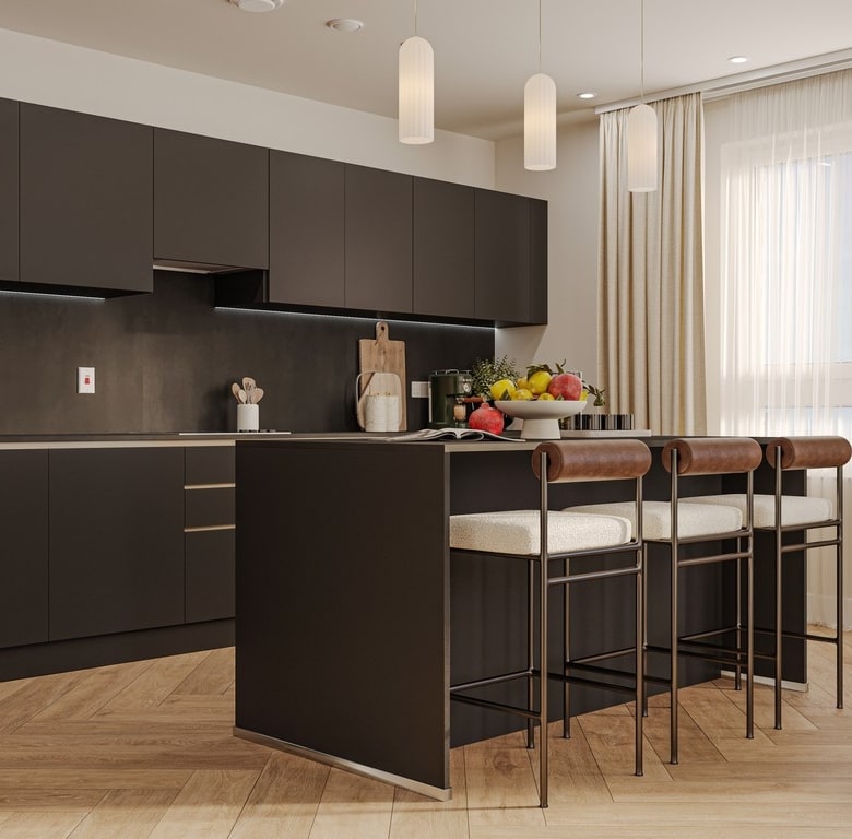 Bespoke kitchens with Cosentino stone worktops, waterfall island counters, and premium AEG appliances