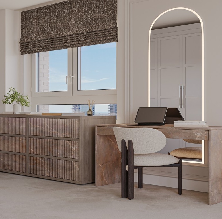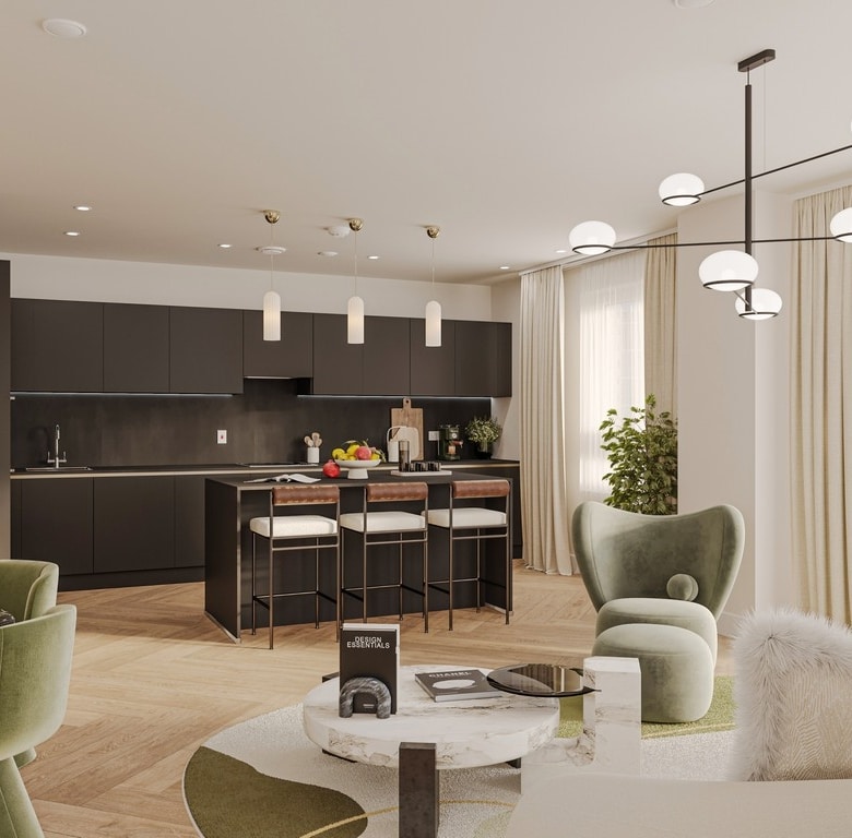 Bathed in natural light, each penthouse is an open-plan sanctuary crafted to frame uninterrupted views of London’s skyline. From sunrise over the city’s landmarks to golden evening hues, the outlook is nothing short of extraordinary. Elegant, contemporary interiors seamlessly extend onto generous terraces and balconies, blurring the boundaries between indoor sophistication and outdoor serenity.