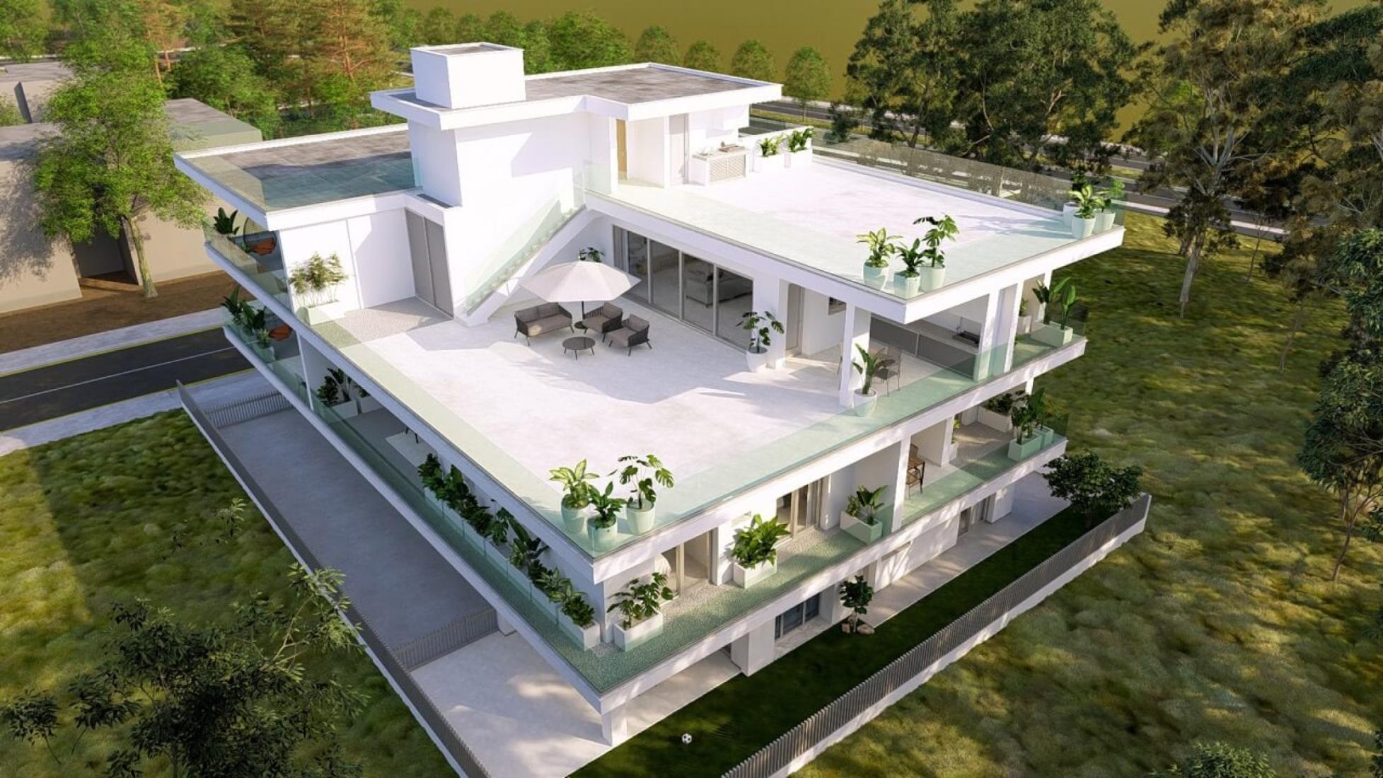 Nestled in the prestigious Archangelos area of Nicosia, this modern apartment boasts a prime location adjacent to green spaces on two sides, with one side seamlessly extending into the renowned Pedieos Linear Park. This unique positioning offers residents immediate access to lush greenery and scenic walking paths, perfect for nature enthusiasts and those seeking tranquility. The apartment’s strategic location ensures easy access to major road arteries, facilitating convenient commutes to various parts of the city.