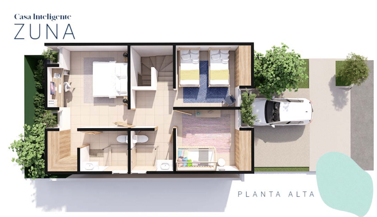 The Zuna Smart House model is characterized by its modern interior design with open spaces for a better use of natural light located in the beautiful Urbalam development consisting of: