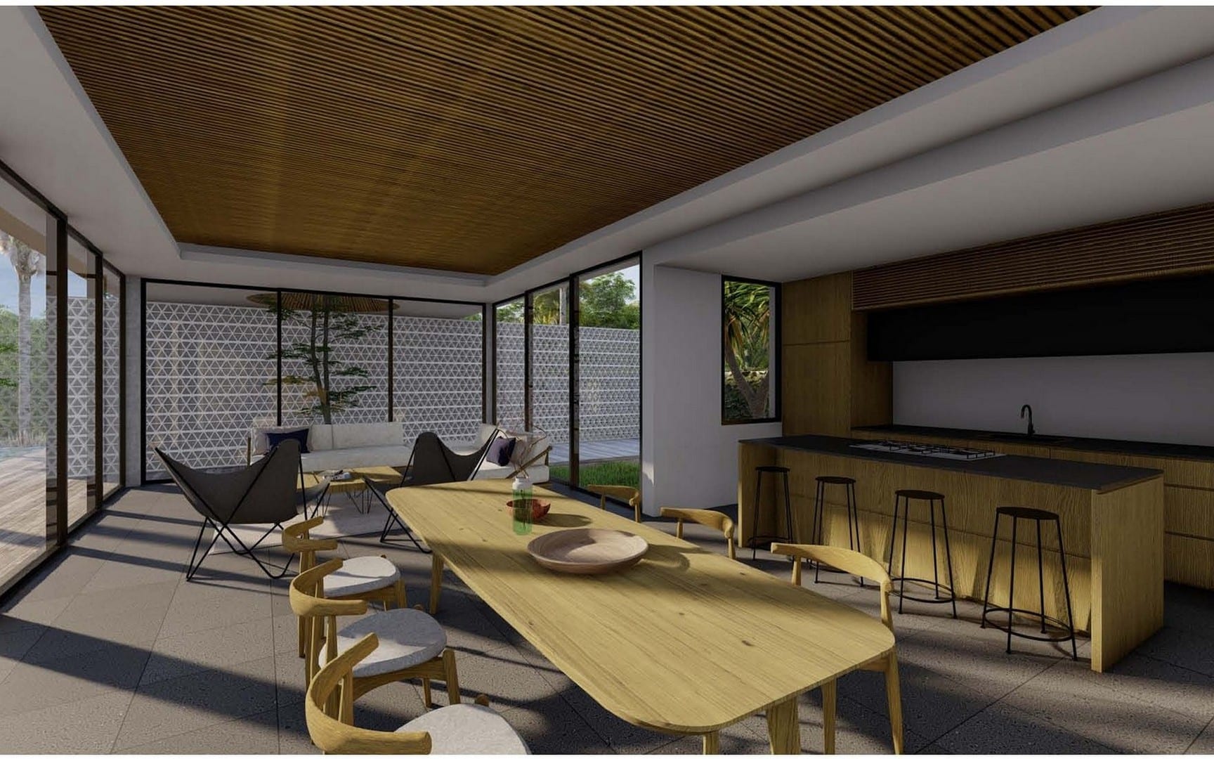 This North facing, Off-Plan villa rests on a generous plot of 800 sqm with a build size of 645 sqm on two levels. Designed to the highest standards, the property features 3 bedrooms with luxurious ensuite bathrooms. The master bedroom found on the second floor is huge while 2 bedrooms on the ground floor have direct access to the large 17 m x 3 m infinity swimming pool and sundeck. The kitchen with island and open plan living areas also opens up with large sliding doors to the pool and outdoors. The property has parking for 2 cars. Sold partially furnished, the villa can be reached from a good 6 metre wide road.