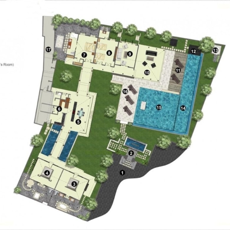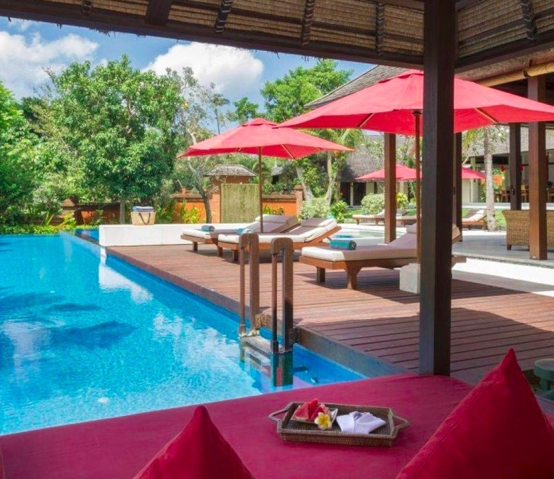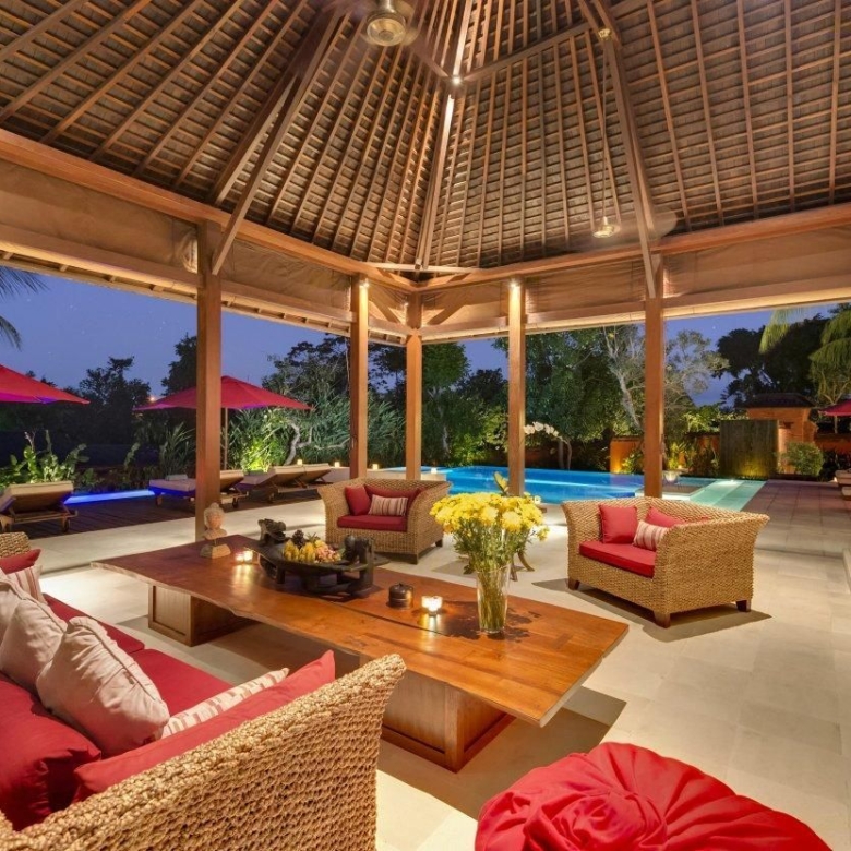 Sprawling across 1850 sqm, the property has 4 bedrooms (three double bedrooms, one twin bedroom) each uniquely designed with Asian influences and adjoined by a decadent outdoor bathroom. Stepping through the front door, you will find yourself in a landscaped garden oasis that surrounds the property and the huge 20 metre lap pool and a second 10 metre square pool. The outstanding property has a very breezy and comfortable open living area and an air-conditioned multimedia/TV room. The dining area and modern fully equipped kitchen occupies its own separate pavilion. There are sun loungers around the pools as well as a relaxation pavilion positioned at the end of the lap pool. The east facing villa is impeccably furnished and there is also parking for cars.