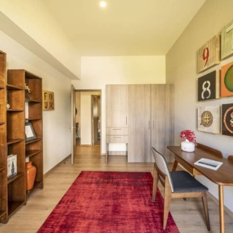 Living room, dining room, equipped kitchen, family room, 3 bedrooms, 2 full bathrooms, study, main bedroom with bathroom and dressing room.