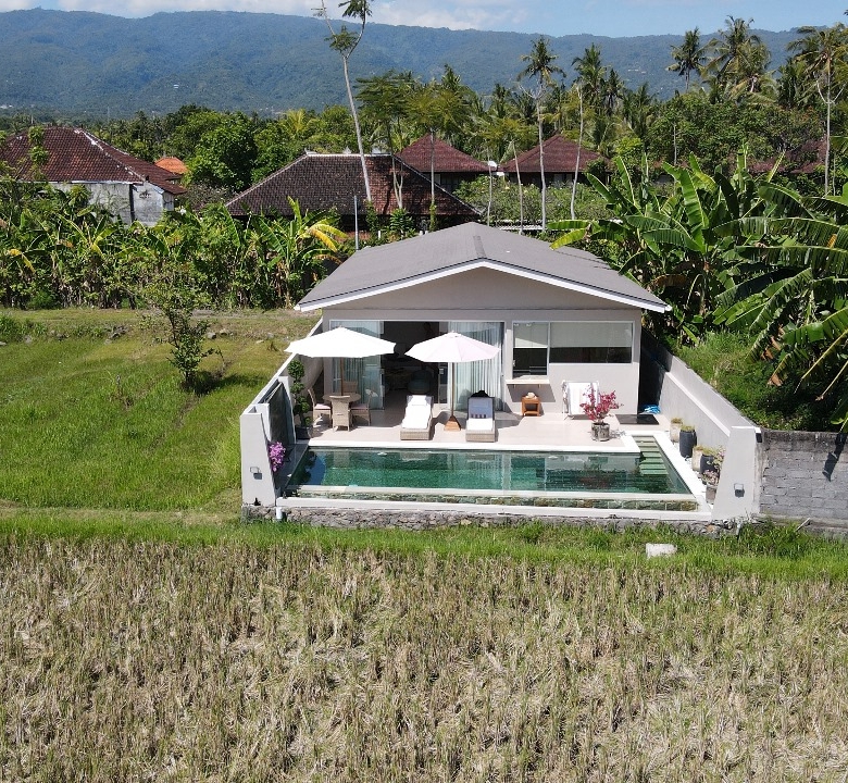 Just minutes from the beach and surrounded by stunning ricefields, this newly completed two-bedroom villa in Lovina offers a rare chance to own a high-quality FREEHOLD property in North Bali’s most promising coastal enclave. Combining modern design with peaceful village charm, the villa makes a striking first impression with clean architectural lines, calming neutral tones, and an infinity pool that stretches to the edge of the surrounding rice paddies.