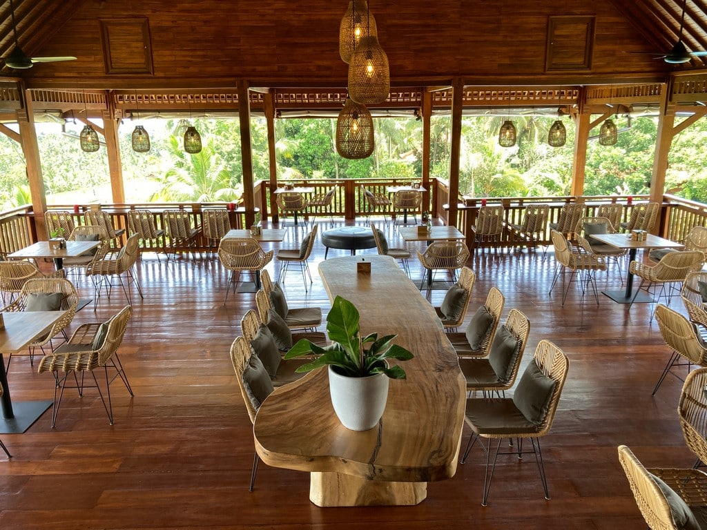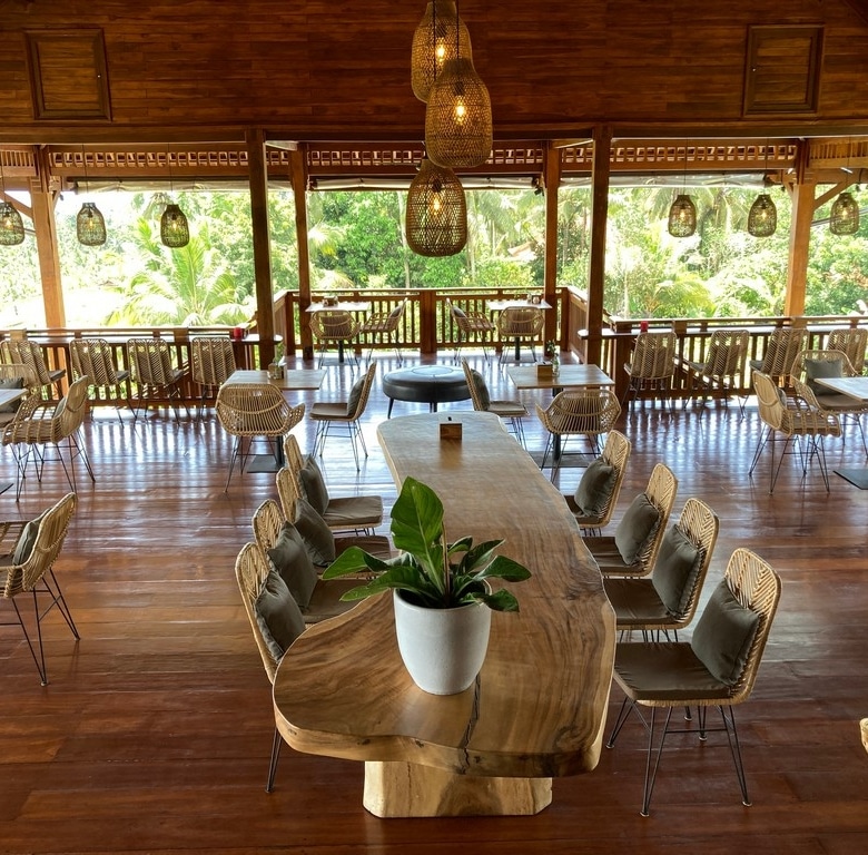 The main restaurant, serving as the heart of the retreat, showcases spacious and light-filled areas. Its open-plan design allows for a seamless flow of natural light, fresh air, and the soothing sounds of nature. Large open spaces captivating views of the surrounding greenery, while tasteful interiors create an atmosphere of calm and relaxation.