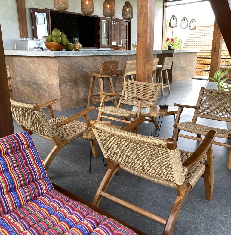 The outdoor area is a sanctuary of serenity, featuring meticulously landscaped gardens with a huge variety of local organic foods growing on site, secluded meditation spots, and inviting spaces for outdoor yoga sessions. A serene pool area provides a tranquil setting for guests to unwind and connect with nature. The surrounding lush greenery and gentle tropical breezes enhance the ambiance, creating an idyllic backdrop for healing and self-discovery.