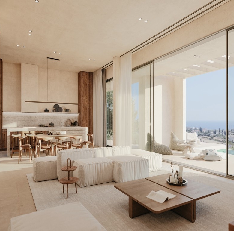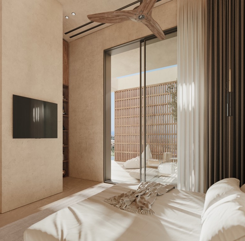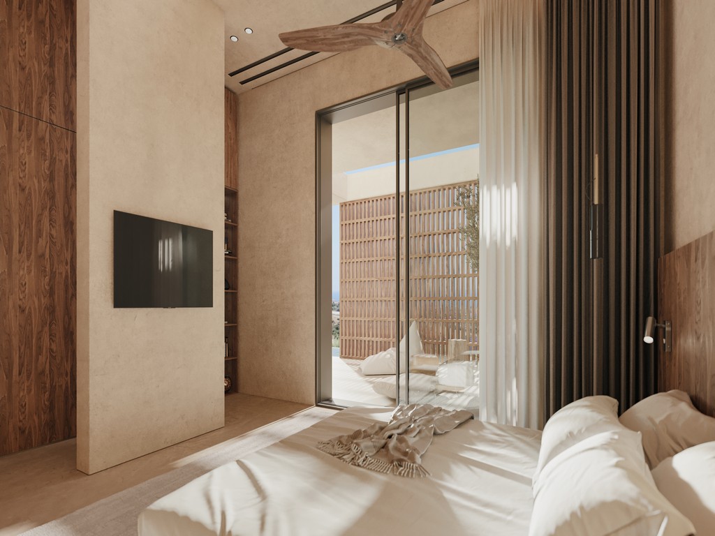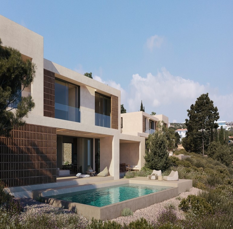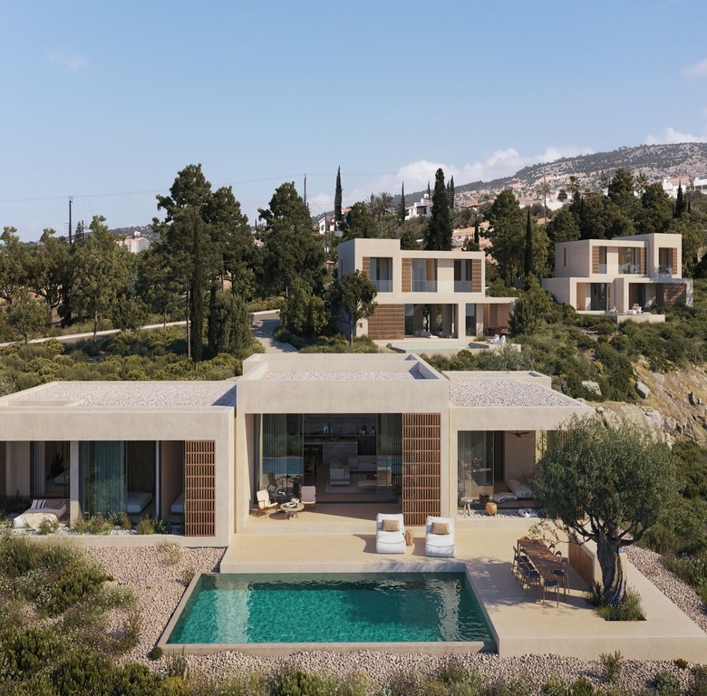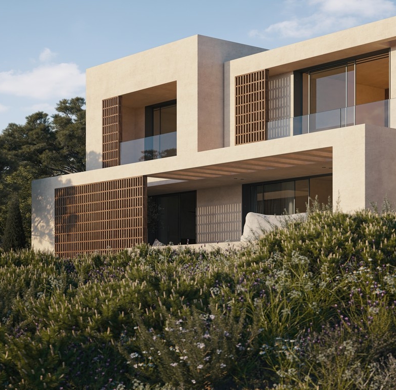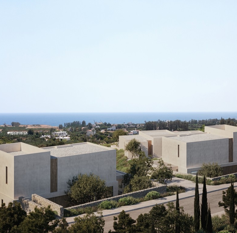 Finally, the project’s landscaping has been meticulously designed, with mature tree plantings in harmony with the naturally occurring greenery. Smaller shrubs, chosen from species endemic to Cyprus, reflect the local environment. An automatic watering system ensures ease of maintenance, while a gravel lining reduces water loss through evaporation.