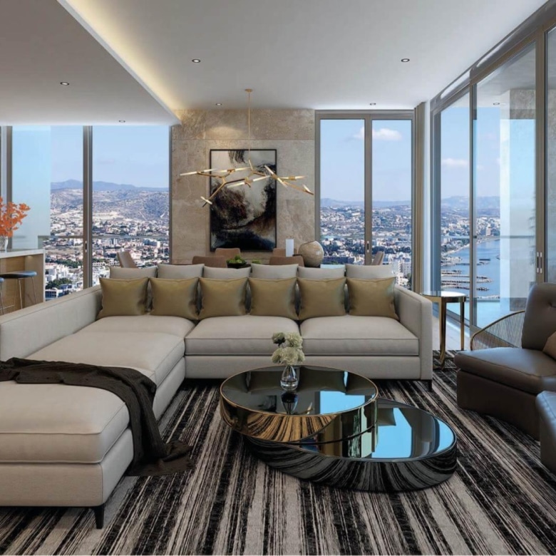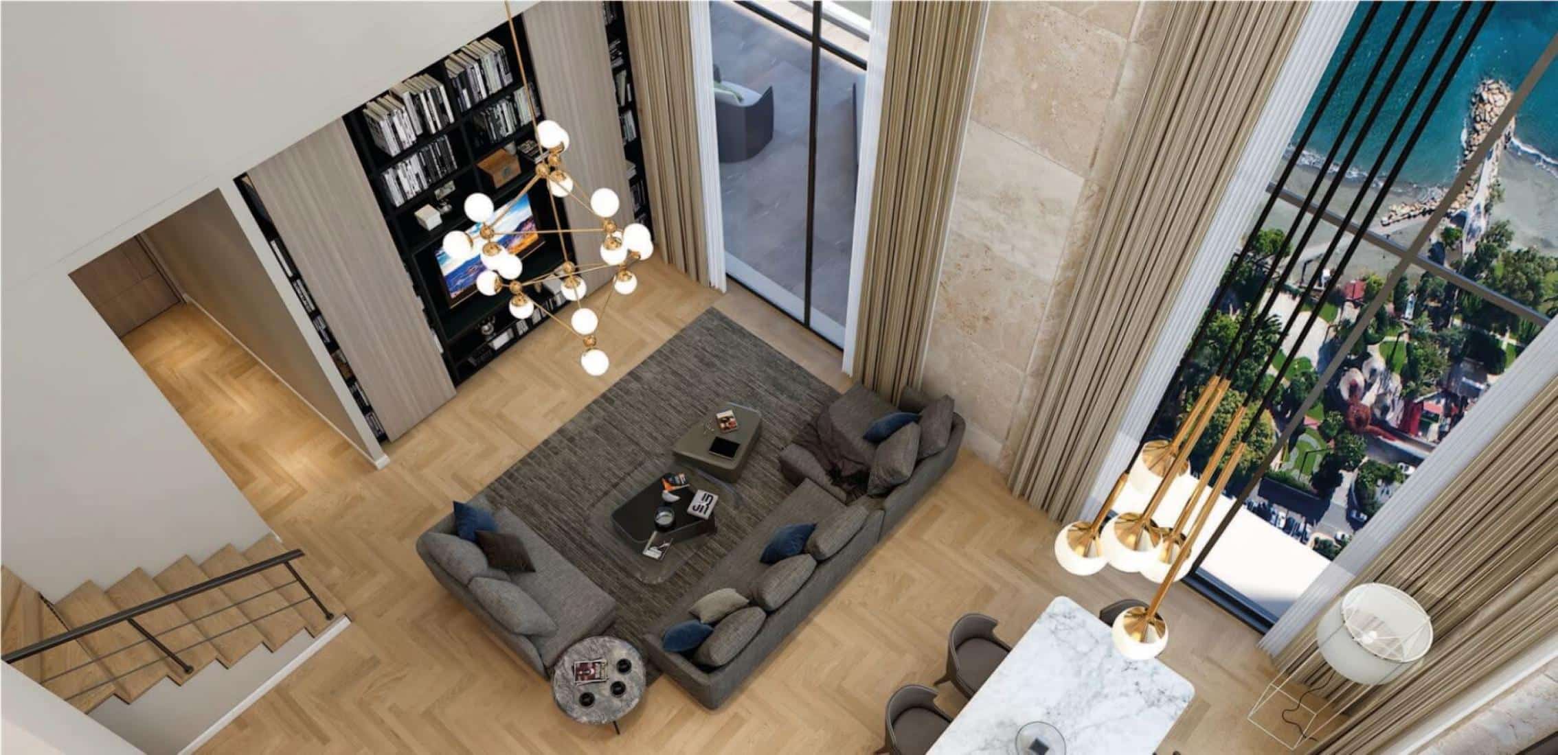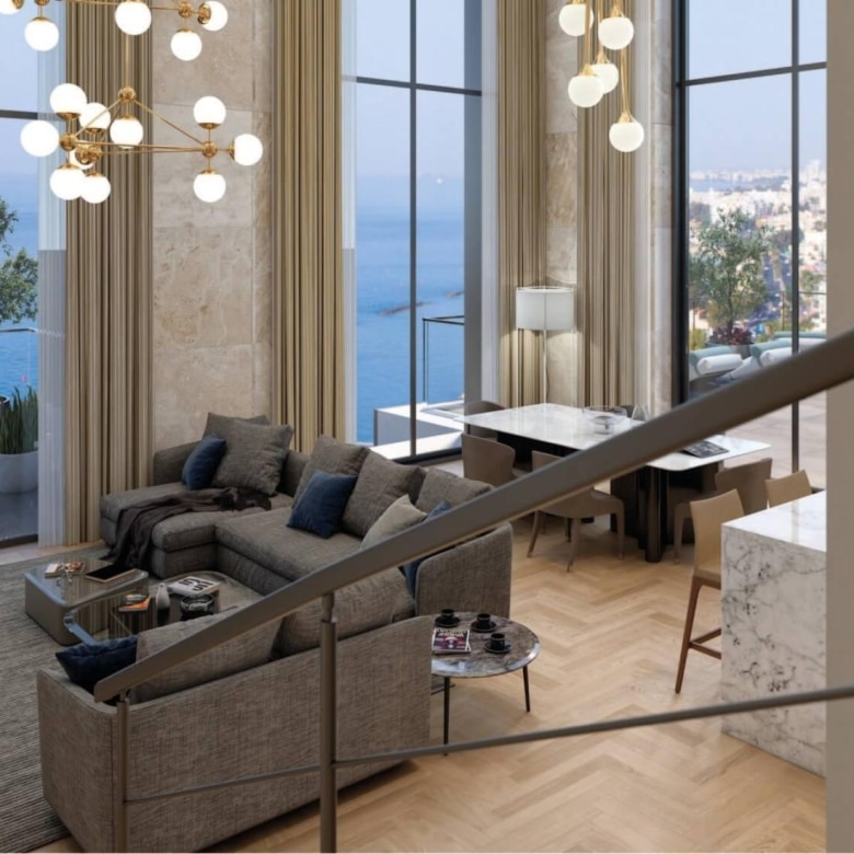 This amazing sea front luxury triplex apartment, (21st, 22nd and 23rd floor) is part of 27-storey premium tower, located in the heart of Limassol, surrounded by five-star hotels, designer boutiques, restaurants and cafes for all tastes. The residence offers a platinum level of island living to discerning residents seeking quality, beauty, and exclusivity. It is designed specifically to create a high-end standard of living while 24-hour sapphire views of the Mediterranean Sea complete the picture. Besides, a range of additional services are available upon request, like housekeeping and maintenance for your home, car washing, babysitting & many more.