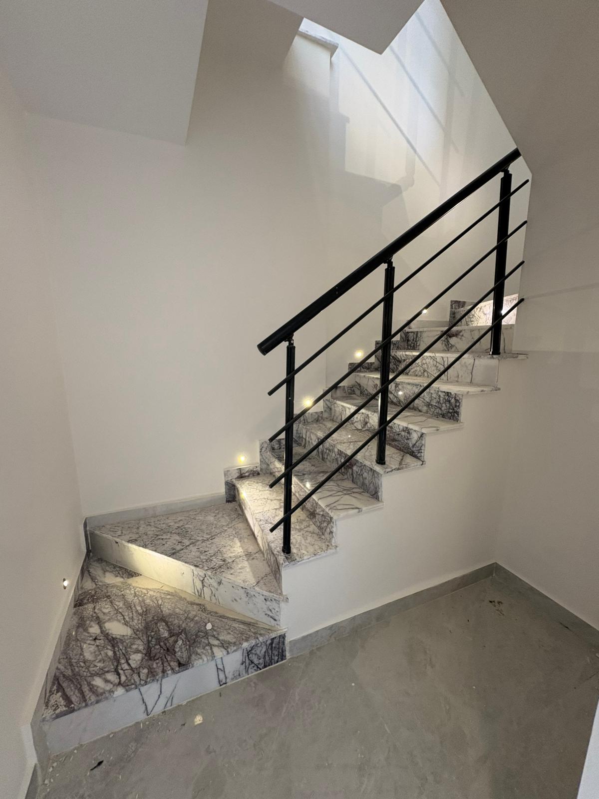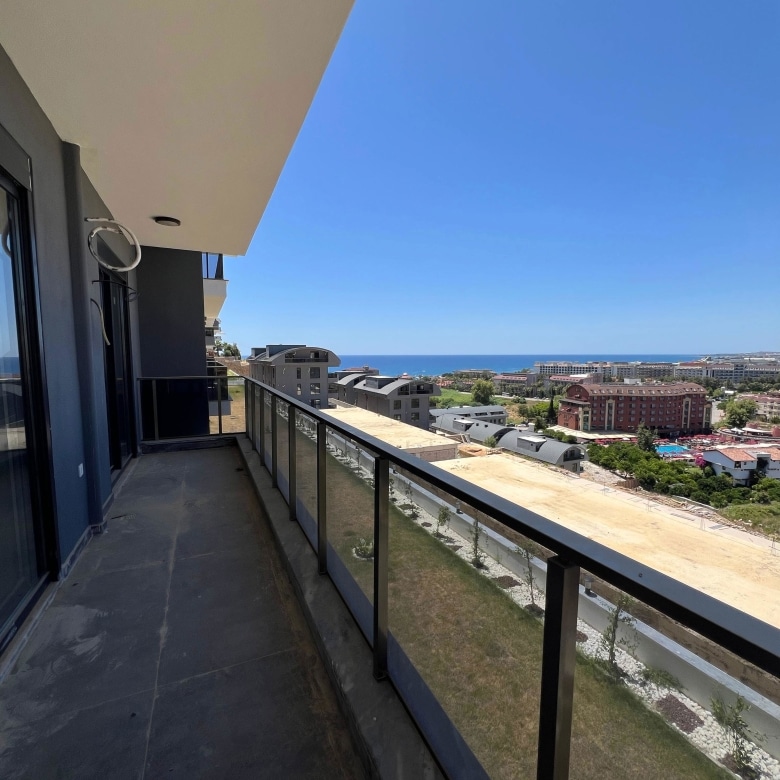 The apartment’s highlight is its wide, spacious balcony overlooking both the sea and the city. It’s an extension of the living room, an “outdoor lounge” under the open sky. Glass railings underline the modern aesthetic, while light ceramic flooring keeps everything bright and clean. Whether it’s morning coffee, a family breakfast, or a sunset drink, the balcony makes every day feel special.