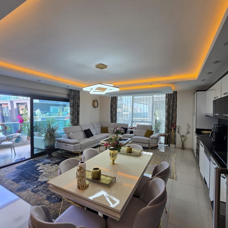 In this neighborhood, this 3 room apartment inPlatinum Residence, Alanyaoffers a bright and spacious apartment of 110 m². It has three rooms, plenty of space for comfortable living, and a beautiful sea view you can enjoy every day. The beach is just a short 300-meter walk away, so you can go for a swim or a stroll by the water whenever you like.