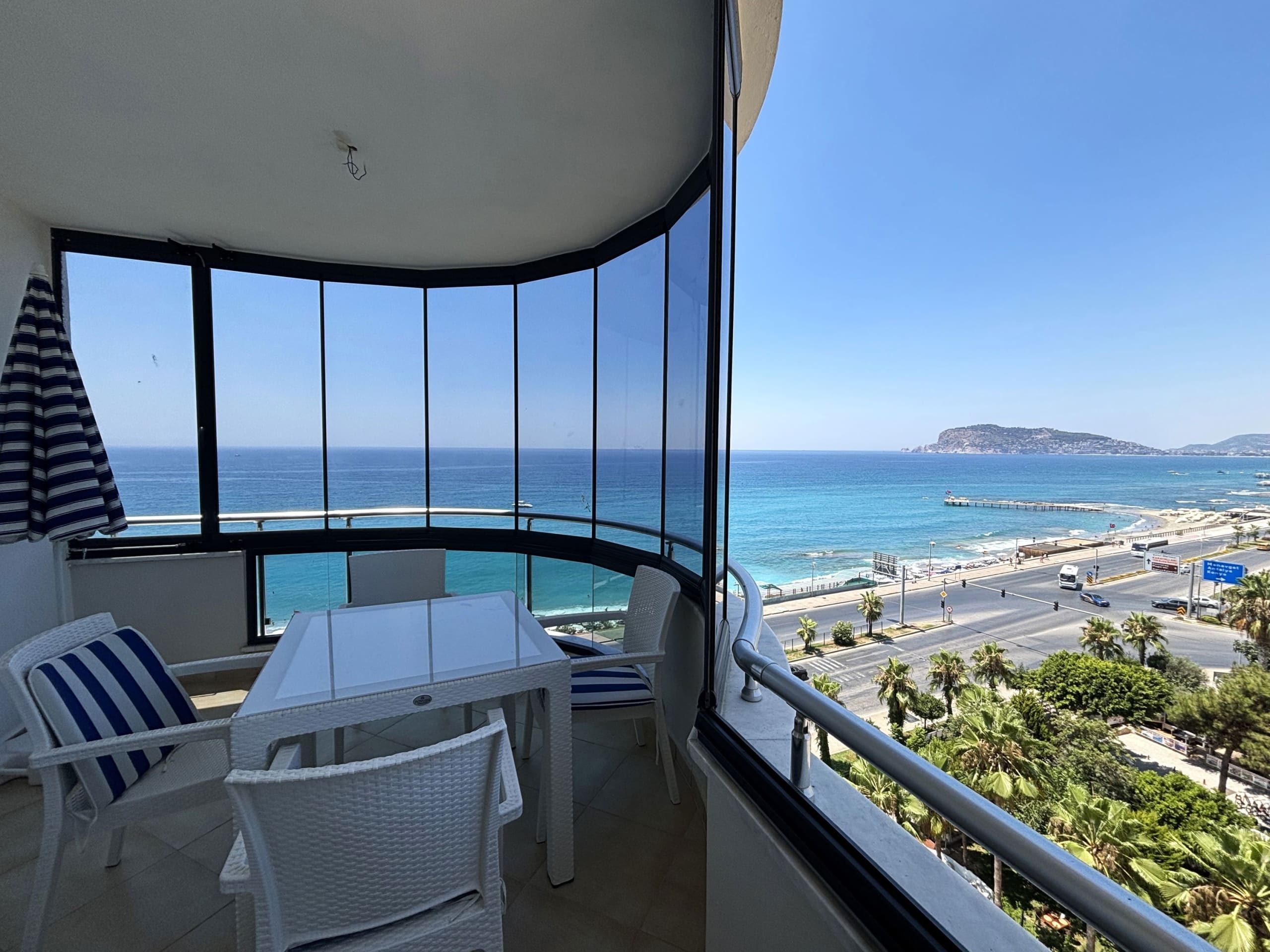 Perhaps the apartment’s strongest asset, the balcony extends the living area outdoors. Glass railings ensure uninterrupted views of the sea. Evenings on this balcony offer a private front-row seat to the Mediterranean sunset.