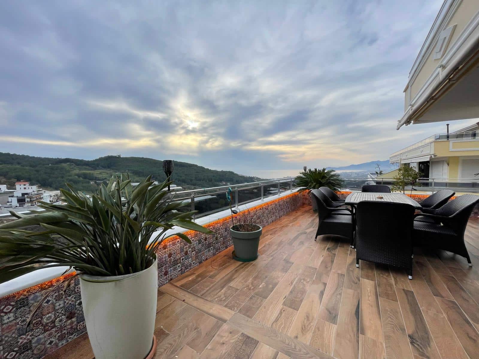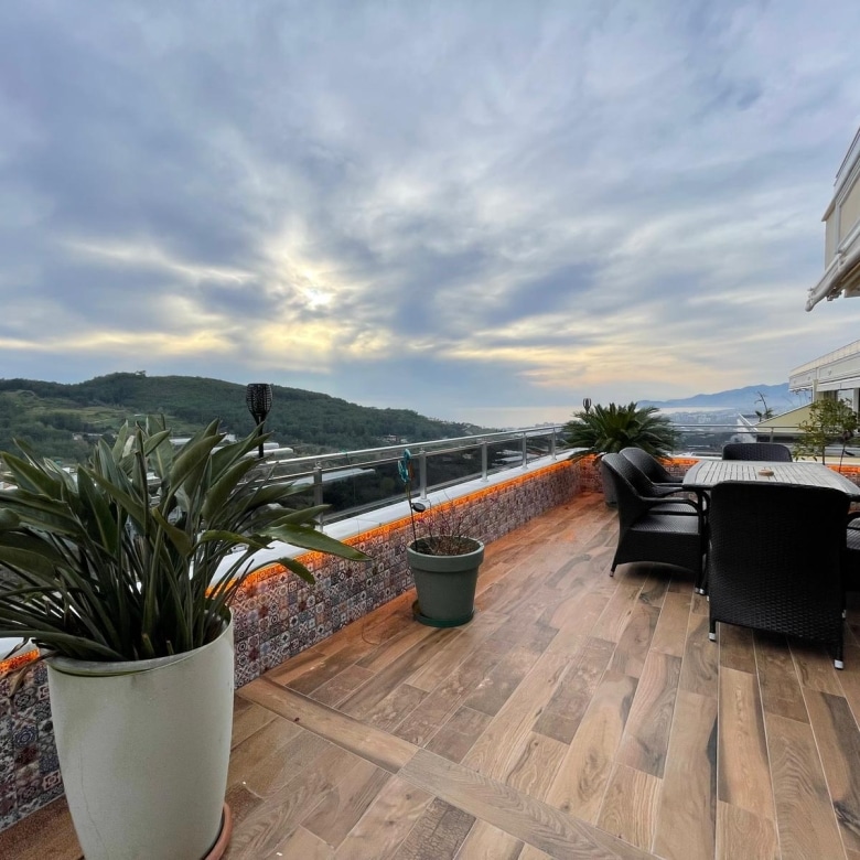 The terrace opens up to beautifulmountain and city views, with a wide-angle perspective and peaceful surroundings.