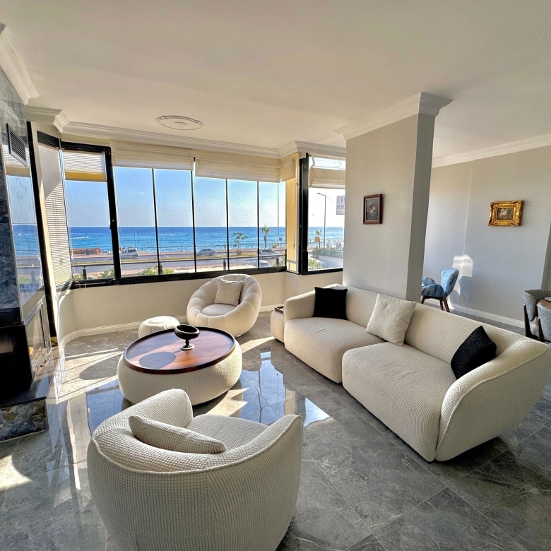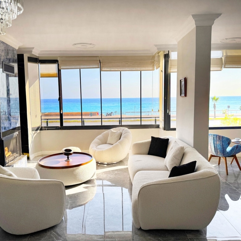 Waking up to the gentle rhythm of the waves and watching the sun set behind the historic Alanya Castle is not just a holiday dream—it can be your everyday reality. Thisseafront andsea view apartment in Alanyasits Tosmur district- directly on the shoreline, offering an uninterrupted front-row view of the Mediterranean’s endless blue and the timeless silhouette of the castle. Every glance from your windows feels like looking at a postcard.