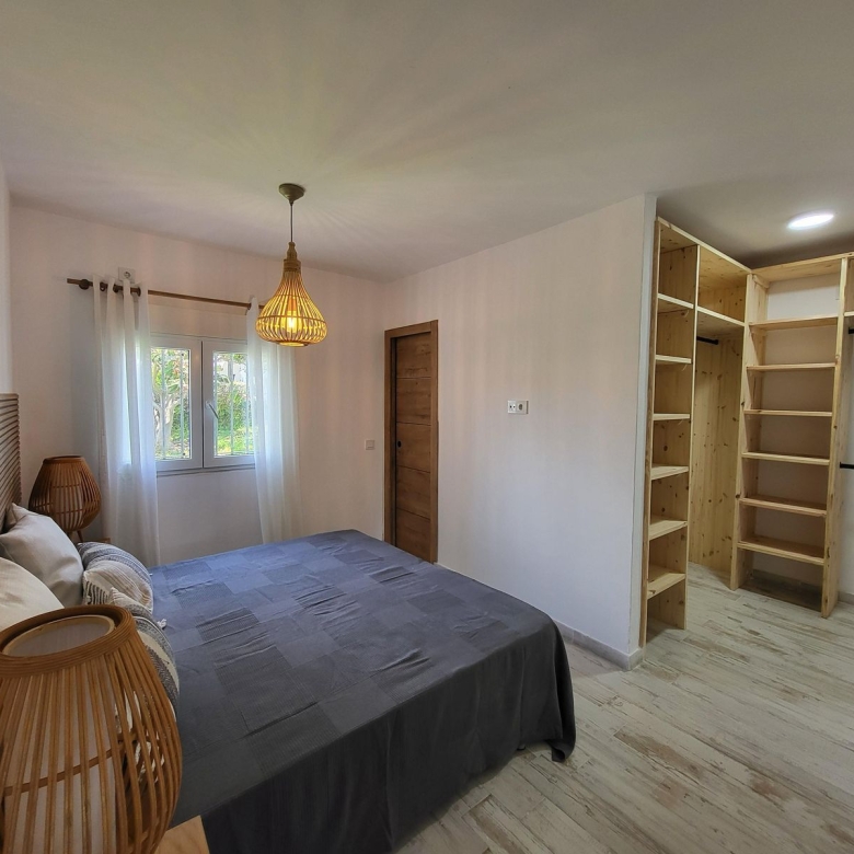 Upstairs, the home features two generously sized bedrooms, each with its own ensuite bathroom. Both bedrooms enjoy sea views and direct access to a large upper terrace that spans the width of the house and provides breathtaking panoramic views. One of the bedrooms also offers access to a large private garden, an ideal space for sunbathing, gardening, or simply unwinding in the open air.