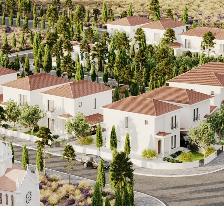 Complex of city villas, and is divided into 2 types: villas and semi-detached houses. This project is located in the central of Geroskipou, this magnificent location features a large, central square at its heart – a harmonic combination of tradition and modernity. These city villas have a smart design that can take absolute advantage of all functions of the living space. Each unit comprises of 2 to 3 bedrooms with total covered areas up to 175 square meters. Living room space and kitchen space are open. All units get their own covered veranda and covered parking. The project is in close proximity to a wide range of shops, restaurants, bakeries, cafes and bars. And only a short driving to sandy beaches, Kings Avenue Mall, golf resorts as well as various educational institutions.