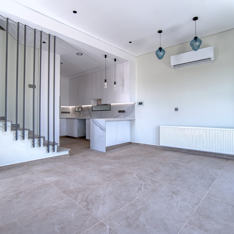 Nestled in the charming village of Tremithousa in Paphos, this beautifully designed semi-detached villa offers a perfect blend of comfort, style, and practicality. The property spans 120m² of covered space and 30m² uncovered veranda on a 145m² plot and features three spacious bedrooms, including a master with an en suite bathroom. The villa is thoughtfully equipped with modern conveniences such as air conditioning, central heating, double-glazed windows, and provisions for electric shutters and EV charging. A sleek open-plan kitchen and a cozy fireplace create a warm and inviting atmosphere, ideal for everyday living and entertaining.
