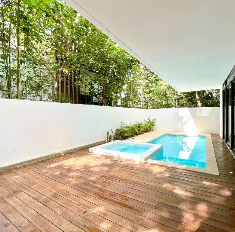 - Rooftop Oasis: The expansive rooftop terrace offers panoramic views of the surrounding jungle, making it the perfect spot for serene sunrises, gatherings with friends, or stargazing under the clear Mayakoba skies.