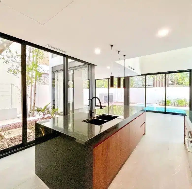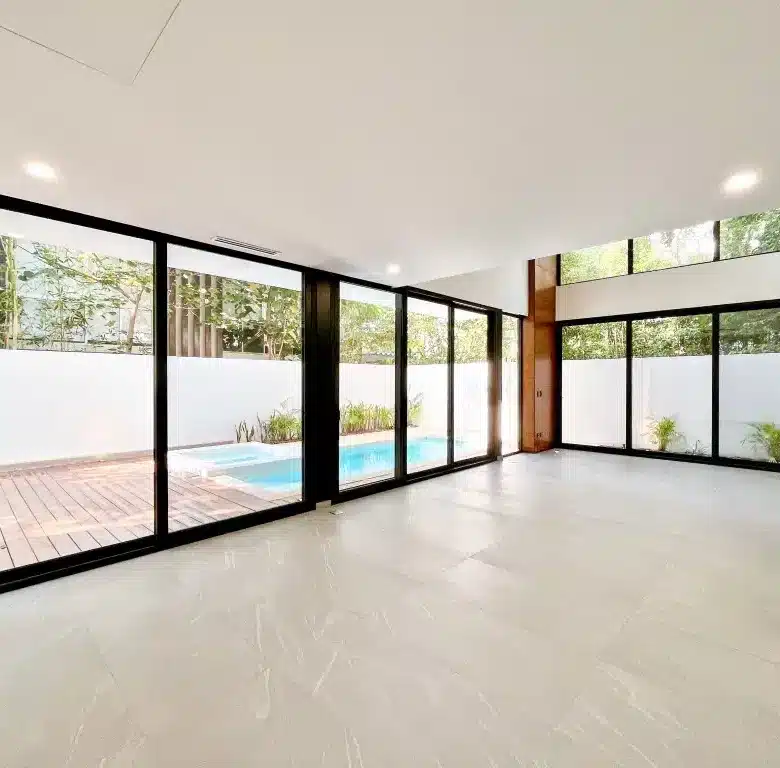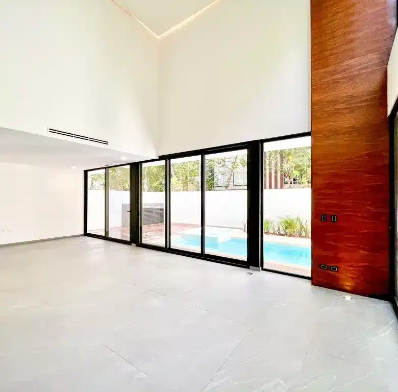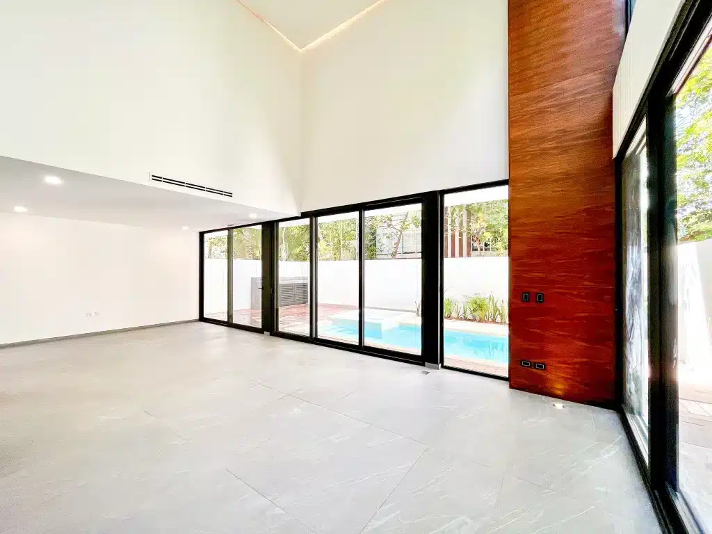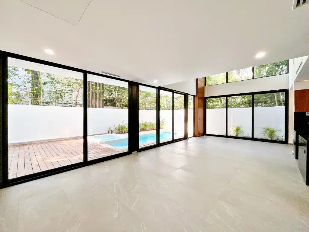 - Expansive Living and Dining Areas: The open-concept living and dining spaces boast double-height ceilings and floor-to-ceiling windows, creating an inviting atmosphere filled with natural light. These areas flow seamlessly onto a private terrace, complete with a beautifully designed patio and swimming pool – perfect for entertaining or unwinding.